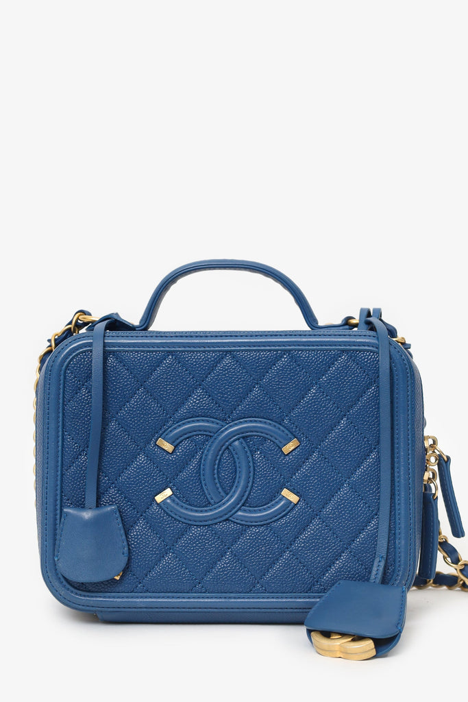 Pre-Loved Chanel™ 2019 Blue Caviar Quilted Small CC Filigree Vanity Case