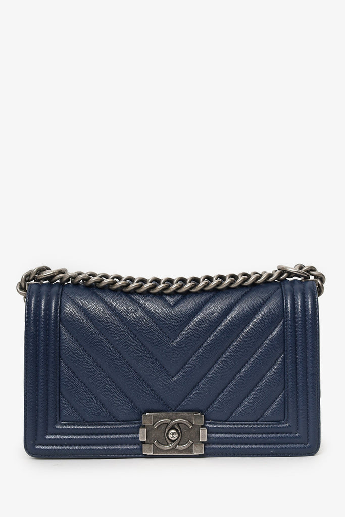 Pre-Loved Chanel™ 2017-18 Navy Caviar Chevron Medium Boy Bag