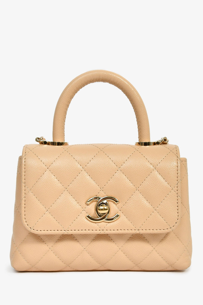 Pre-Loved Chanel™ 2022+ Beige Quilted Caviar Extra Mini Coco Handle Flap Bag
