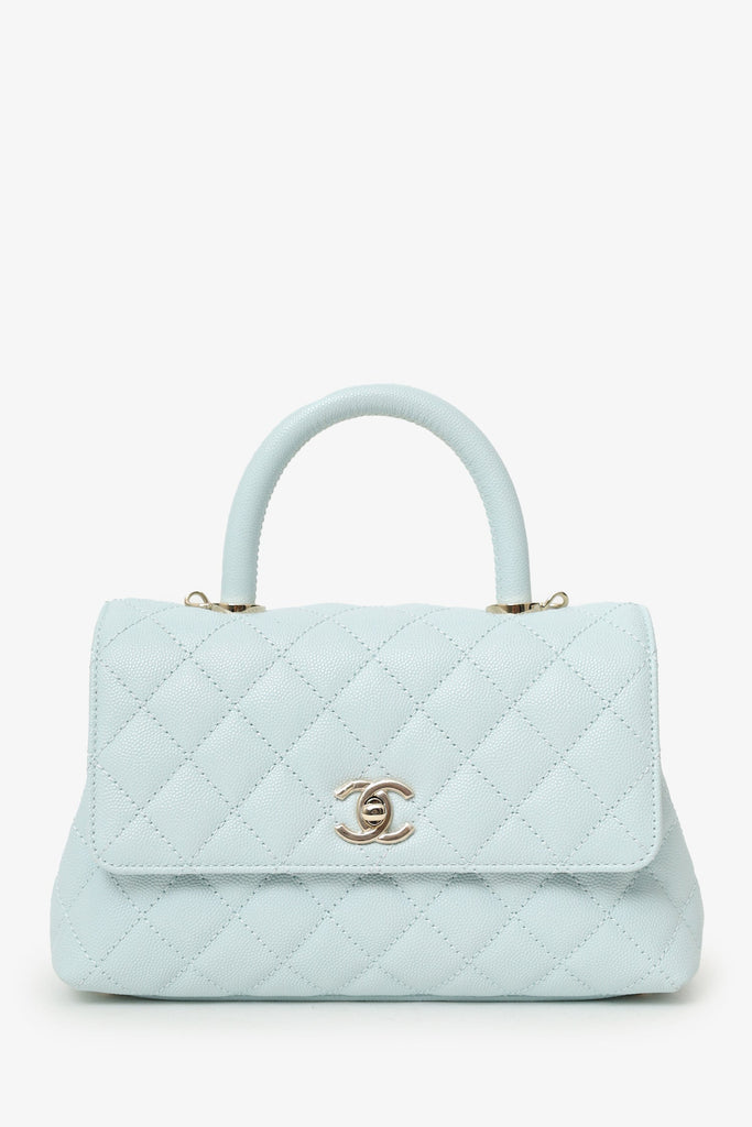 Pre-Loved Chanel™ 21S Tiffany Blue Caviar Leather Small Coco Handle