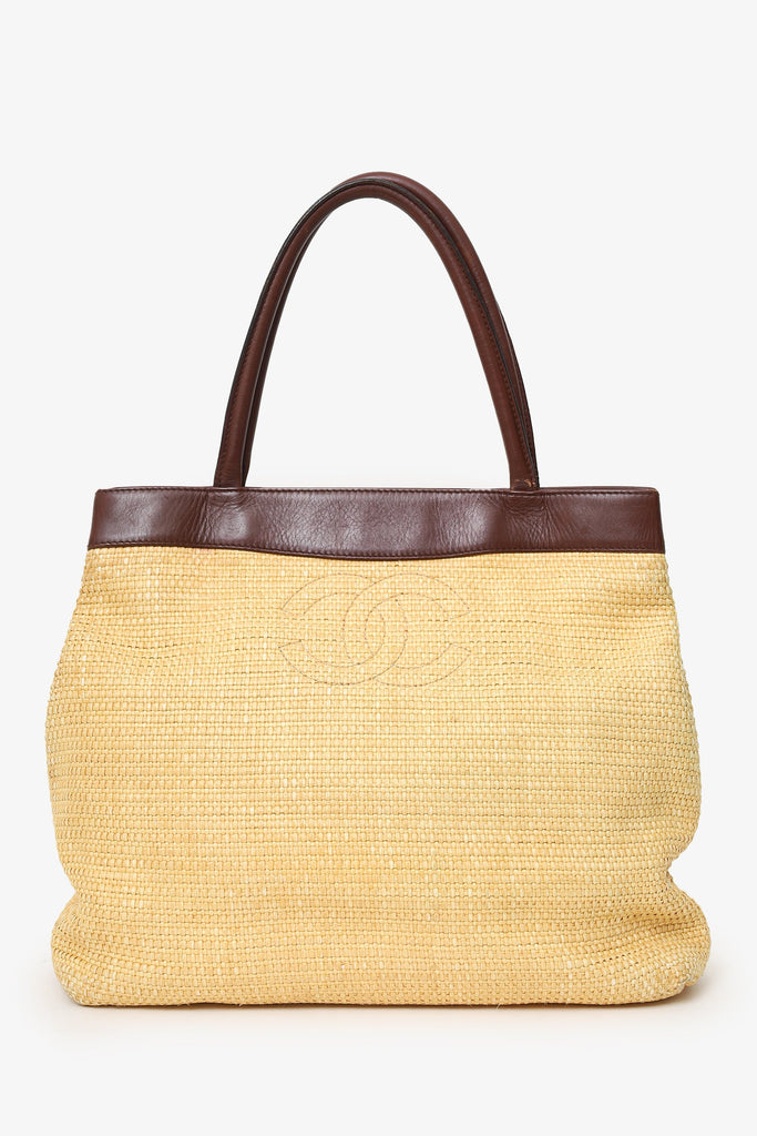 Pre-Loved Chanel™ 1997-99 Beige/Brown Straw/Leather 'CC' Tote