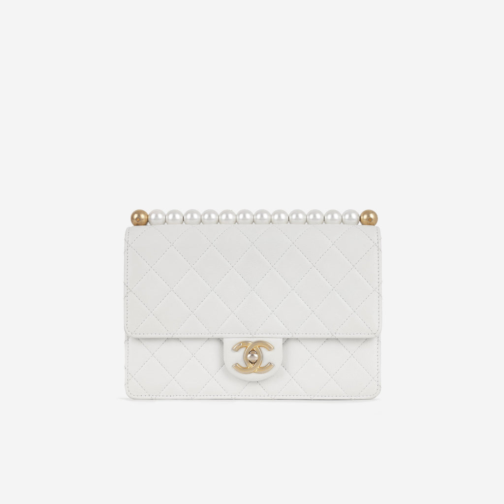 Chanel Medium Pearl Flap - White Calfskin | Gold Hardware