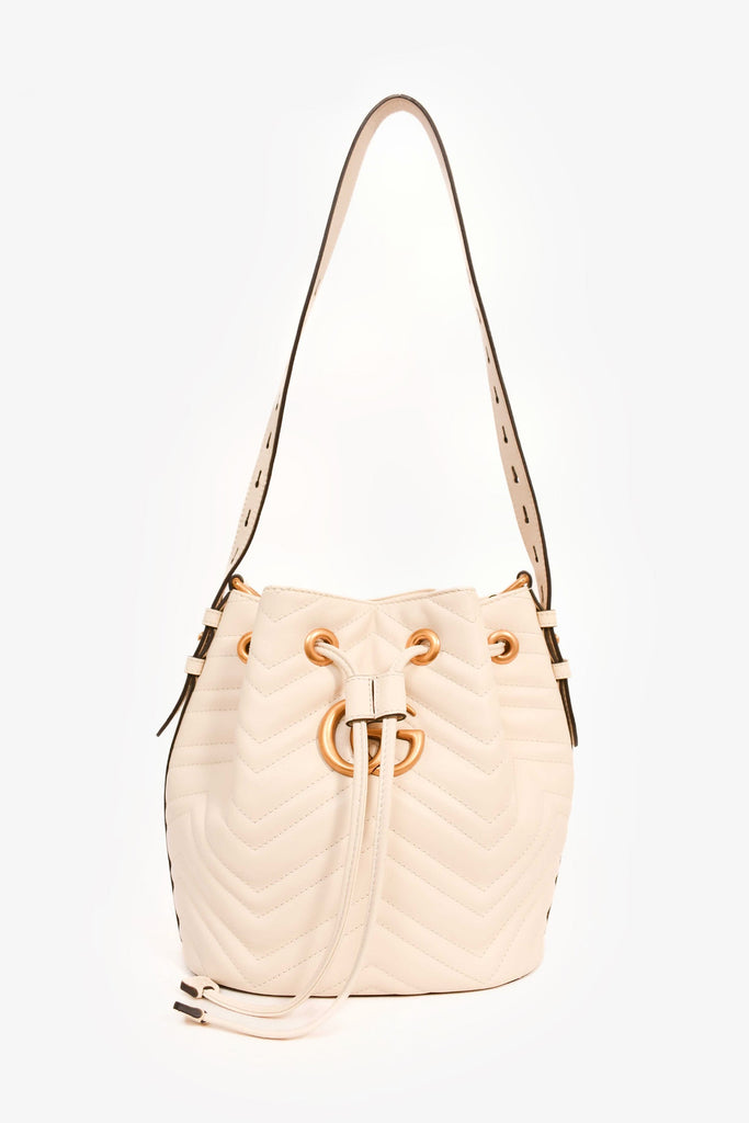 Gucci White Leather GG Marmont Medium Bucket Bag with Strap