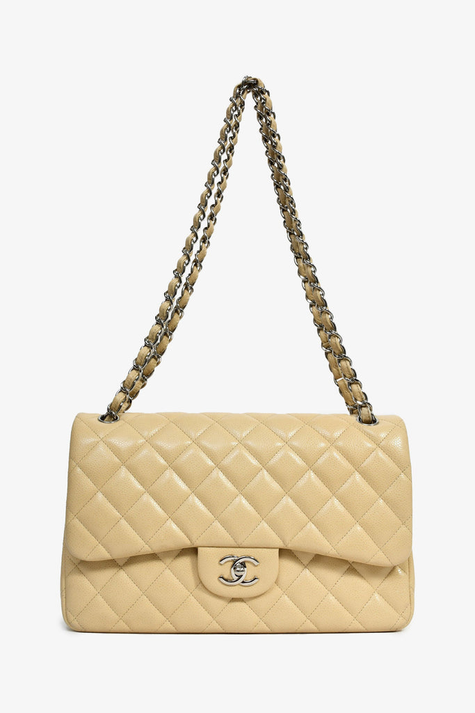 Pre-Loved Chanel™ 2011-12 Beige Caviar Leather Jumbo Double Flap Shoulder Bag