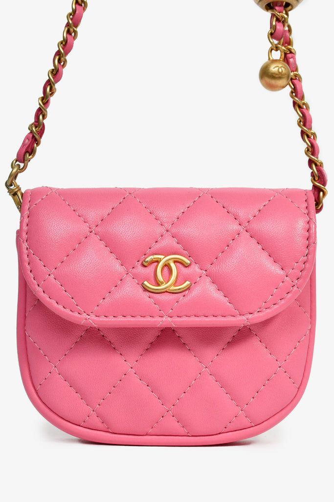 Pre-Loved Chanel™ 2019 Pink Lambskin Mini Pearl Crush Waist Bag