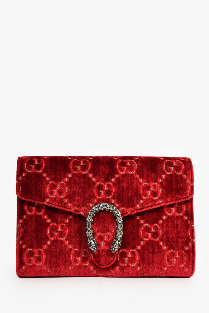 Gucci Red Velvet GG Supreme Monogram Small Dionysus Chain Shoulder Bag
