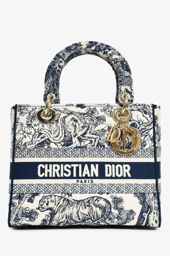 Christian Dior 2022 Navy/White Jacquard D-Lite Medium Top Handle with Strap