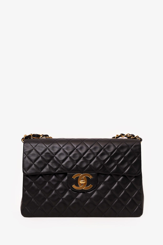 Pre-Loved Chanel™ 1994-96 Black Quilted Lambskin Jumbo XL Maxi Flap Bag