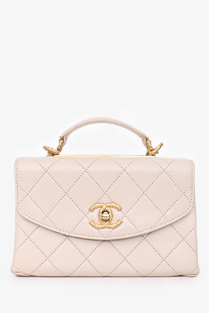Pre-Loved Chanel™ 2020 Beige Lambskin Mini Top Handle Bag with Quilted Gold Hardware