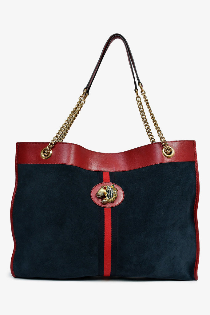 Gucci Navy Suede Raja Tiger Head Tote Bag