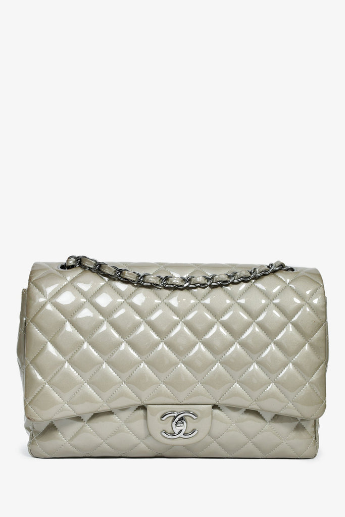 Pre-Loved Chanel™ 2012/13 Grey Patent Quilted Maxi Double Flap Shoulder Bag