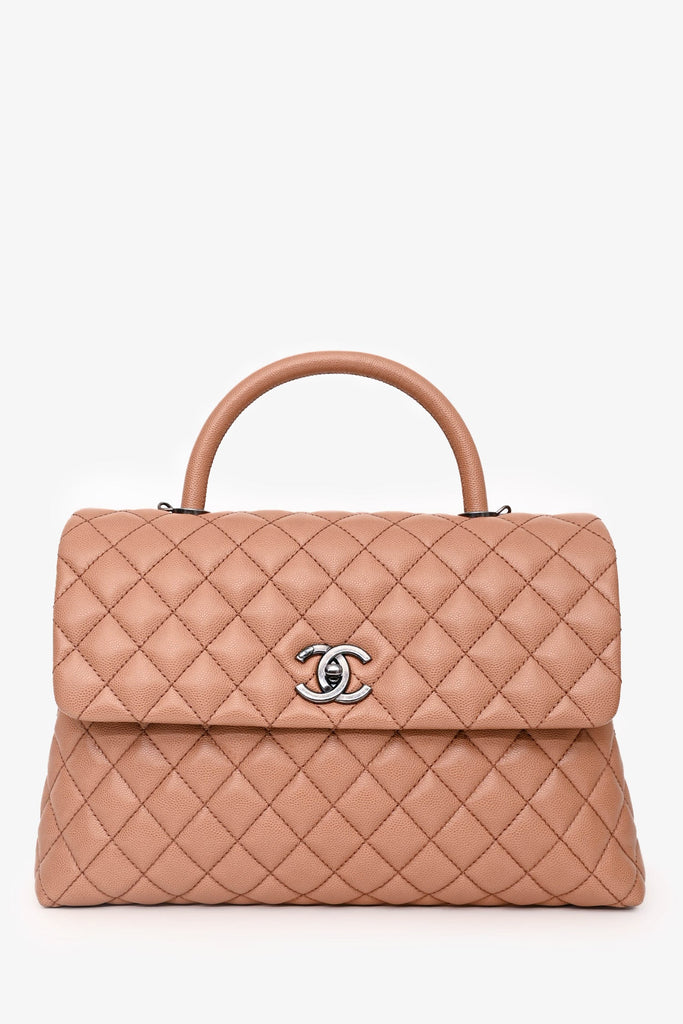 Pre-Loved Chanel™ 2016-2017 Brown Caviar Leather Large Coco Top Handle with Strap