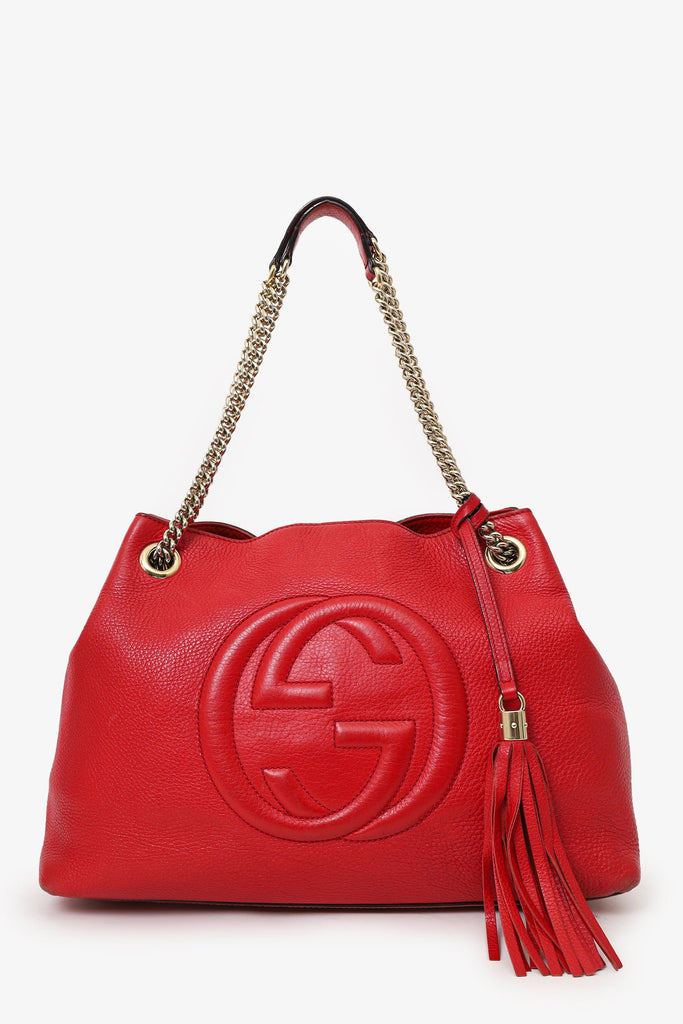 Gucci Red Leather 'Soho' Chain Tote Bag
