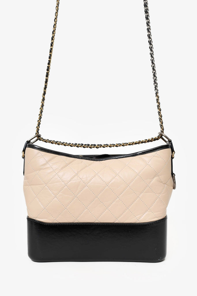 Pre-Loved Chanel™ 2018-19 Beige/Black Leather Medium Gabrielle Chain Bag