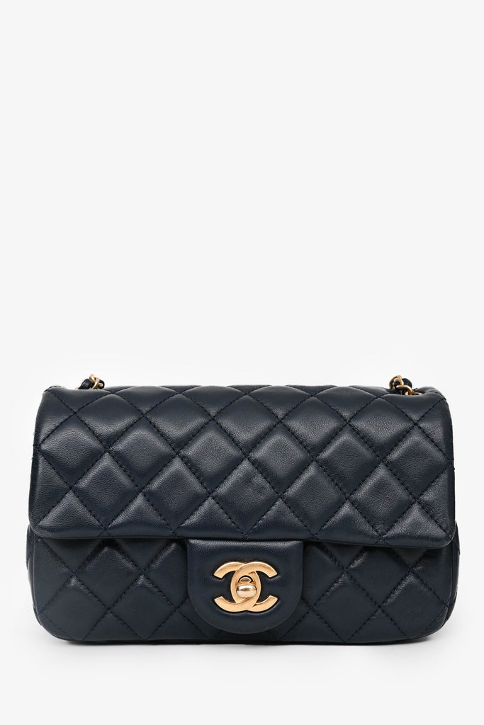 Pre-Loved Chanel™ 2019-20 Navy Lambskin Leather Mini Rectangular Pearl Crush Flap Bag