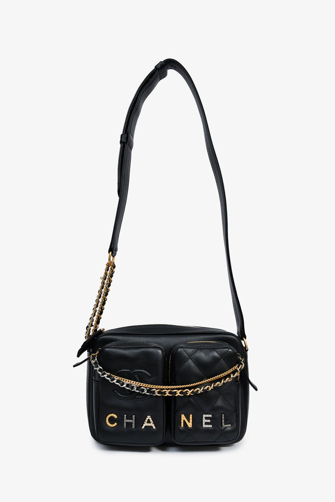 Pre-Loved Chanel™ 2022 Black Leather Chain Detail Camera Bag