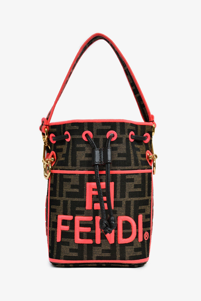 Fendi Brown Zucca/Neon Pink Canvas Mon Tresor Bucket Bag