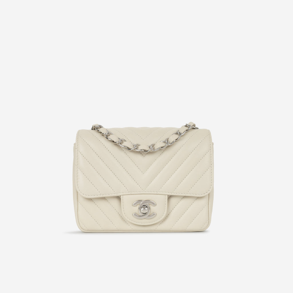 Chanel Mini Square - Ivory Chevron Lambskin | Silver Hardware