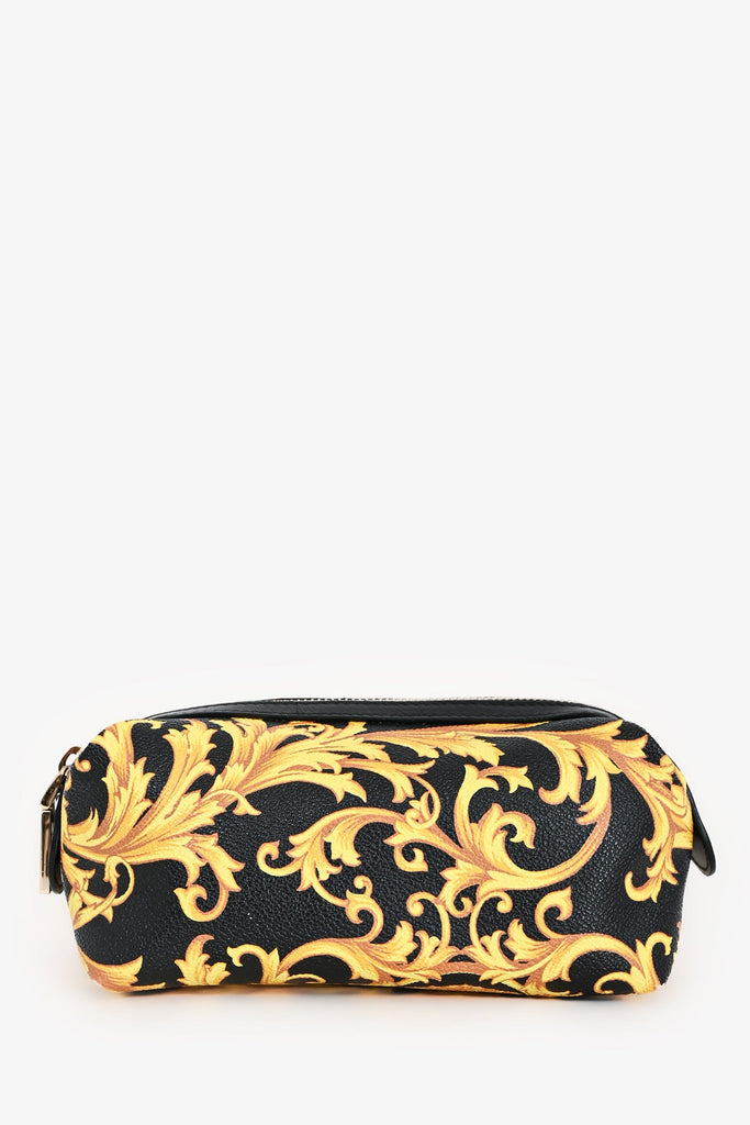Versace Black/Yellow Coated Canvas Baroque Travel Pouch