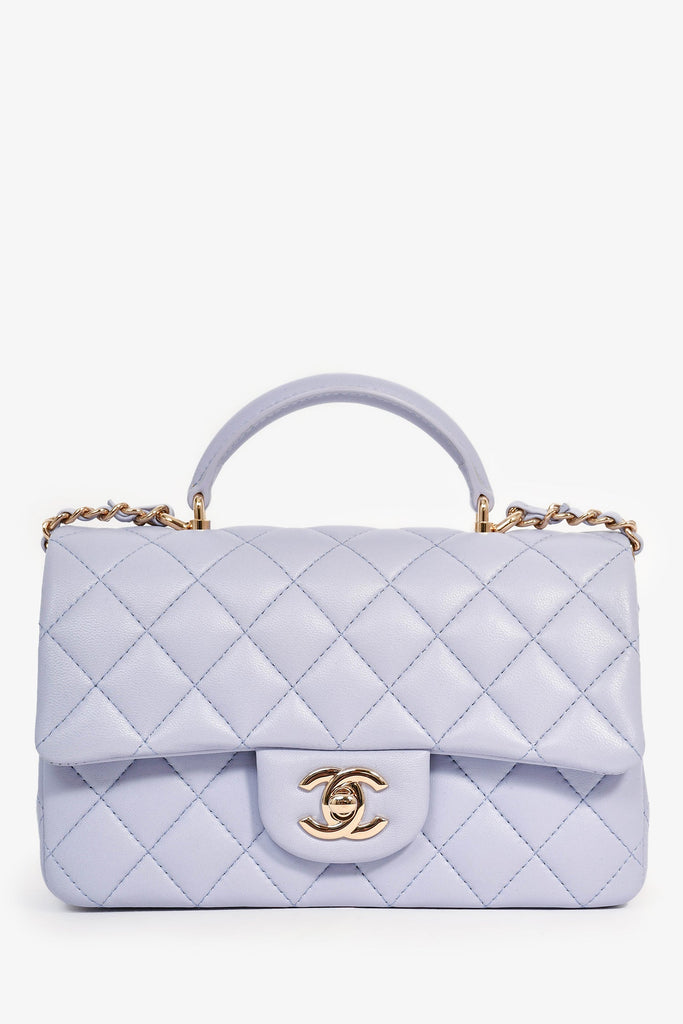 Pre-Loved Chanel™ Lilac Rectangular Mini Top Handle Flap Bag with Chain Strap
