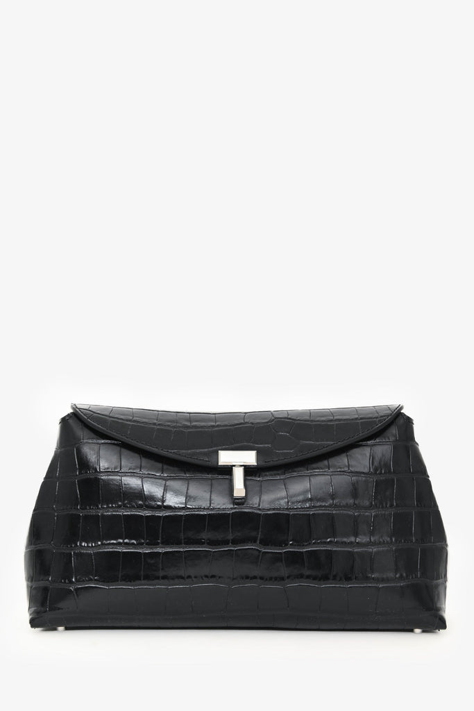 Toteme Black Croc Embossed T-Lock Clutch with Stap