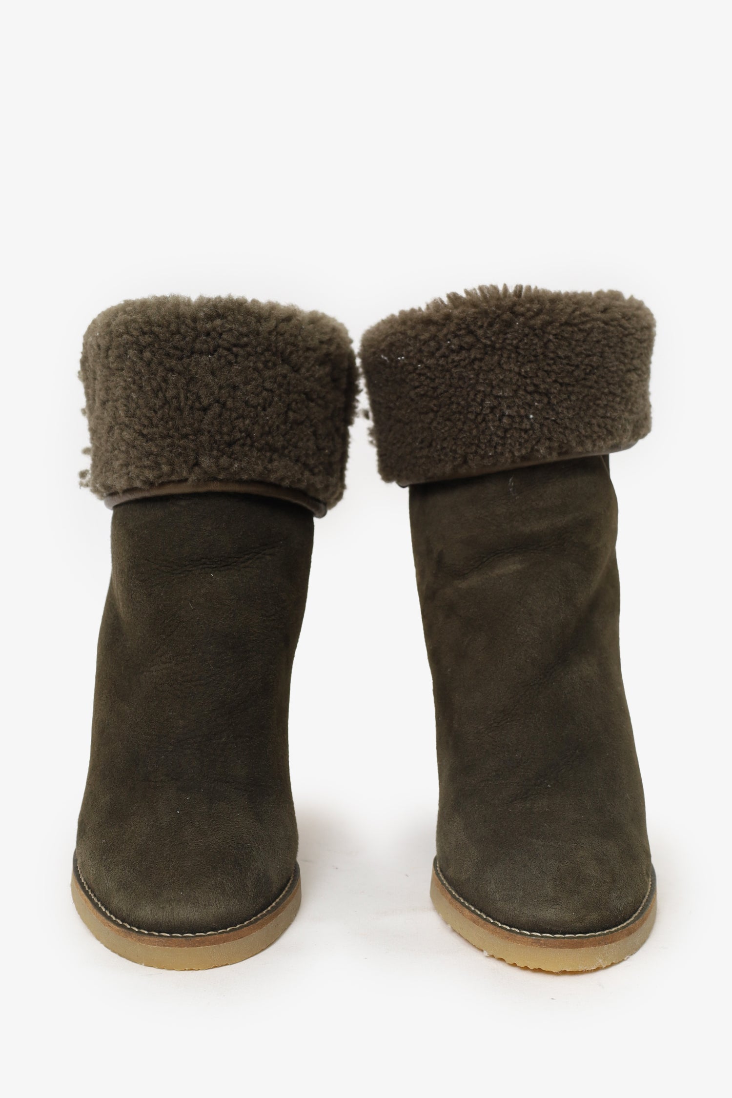 Isabel Marant Khaki Green Suede Shearling Totam Low Boot Size 39