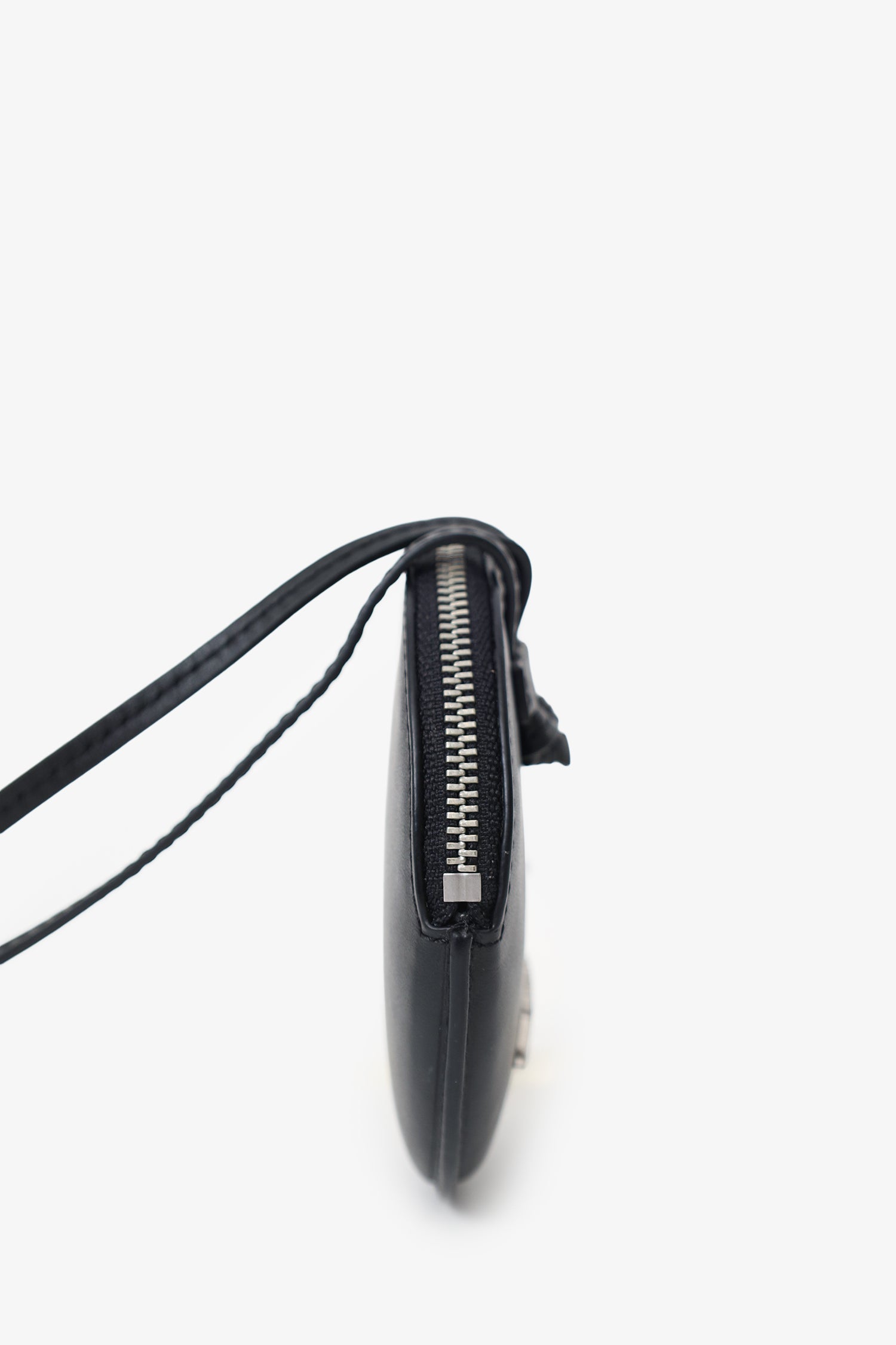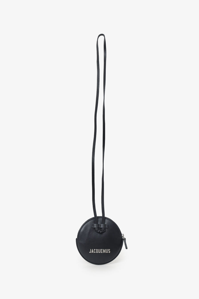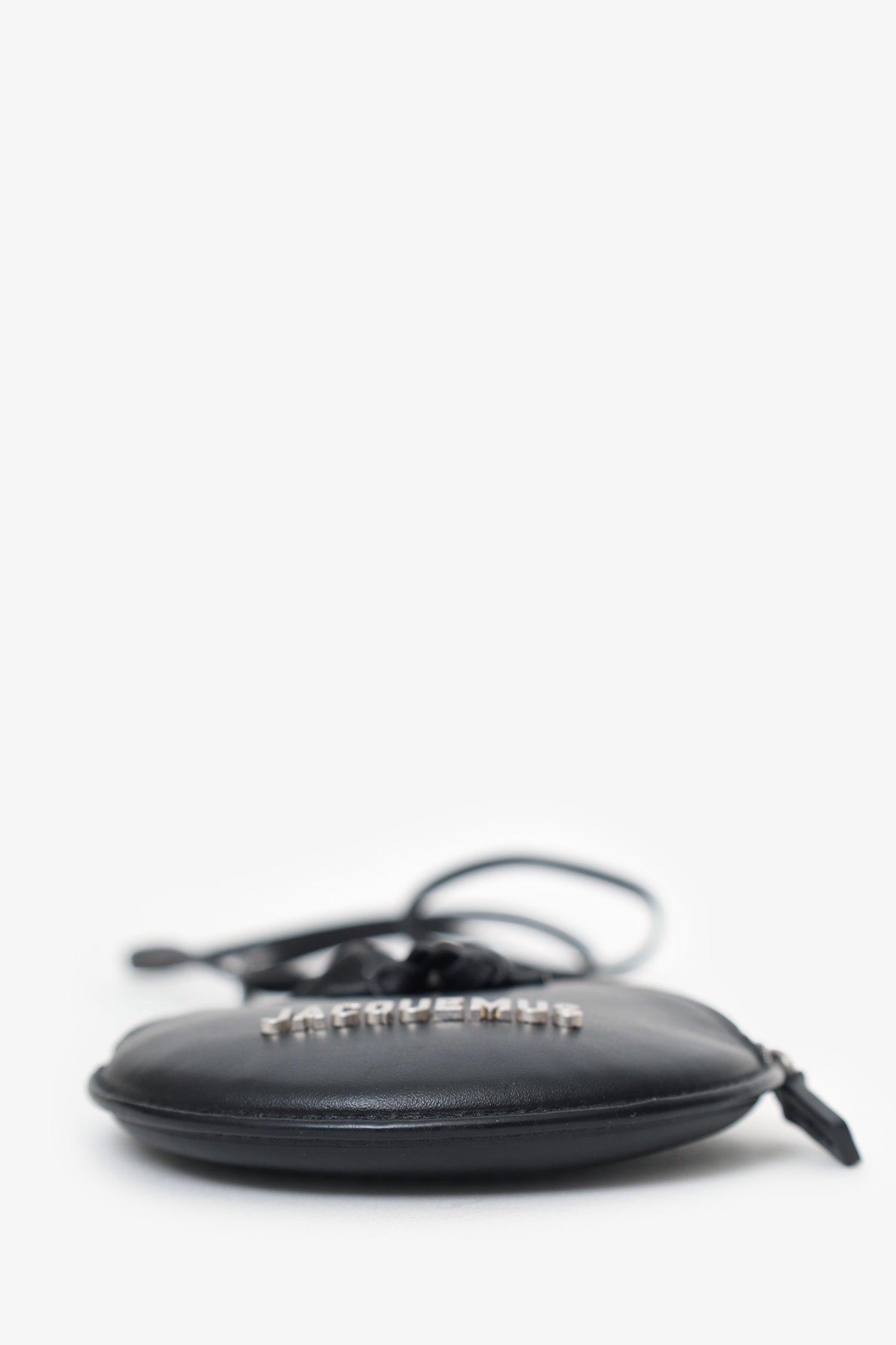 Jacquemus Black Leather Le Pitchou Round Coin Purse with Strap