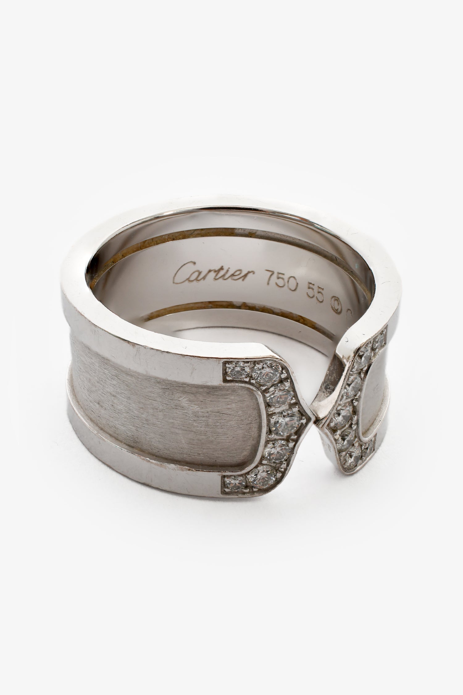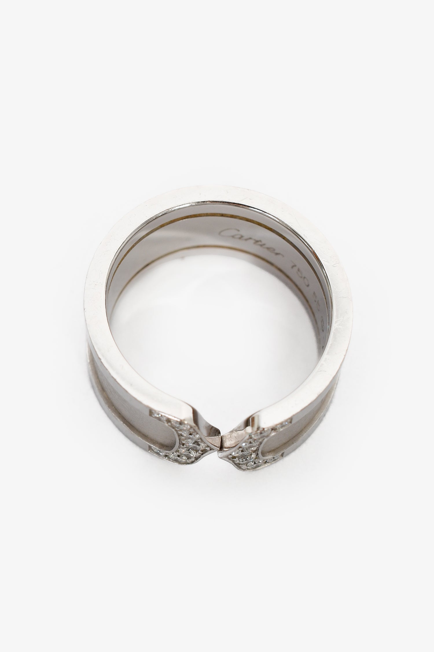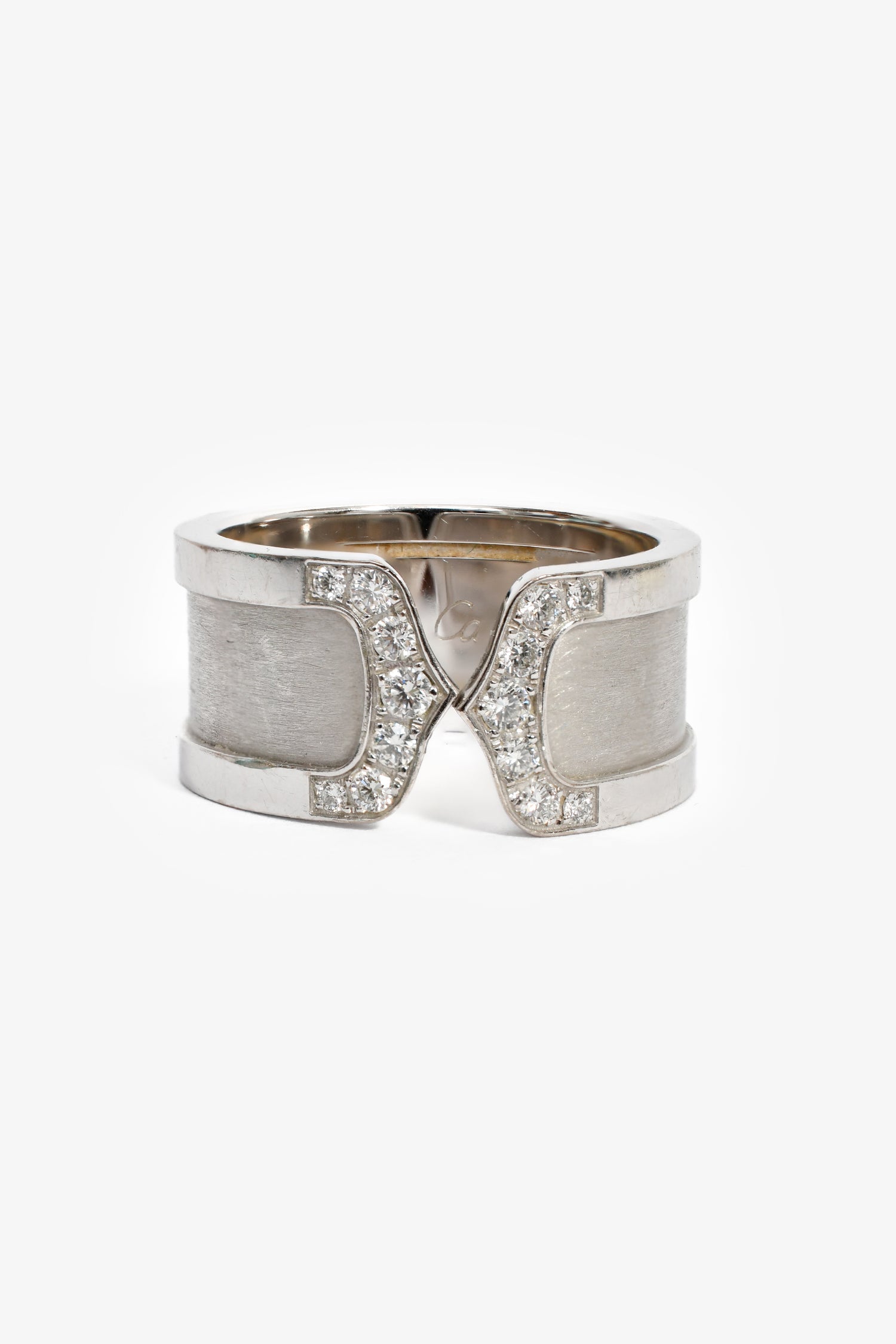 Cartier 18K White Gold Diamond C de Cartier Wide Ring. Slip-on