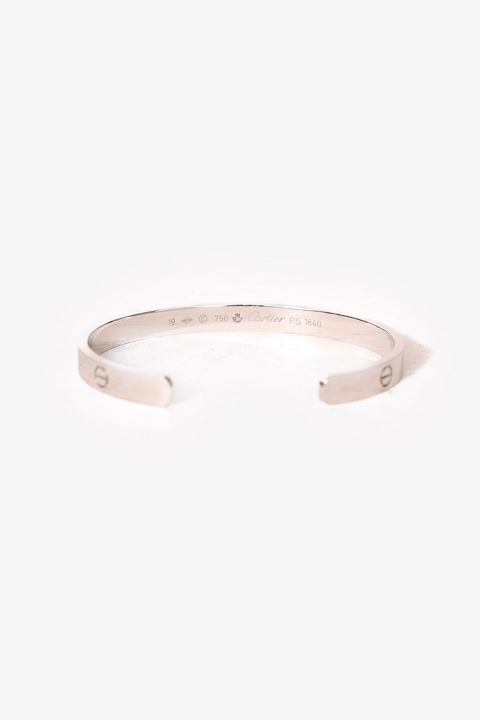 Cartier 18K White Gold Diamond Set Love Cuff Bangle Size 19