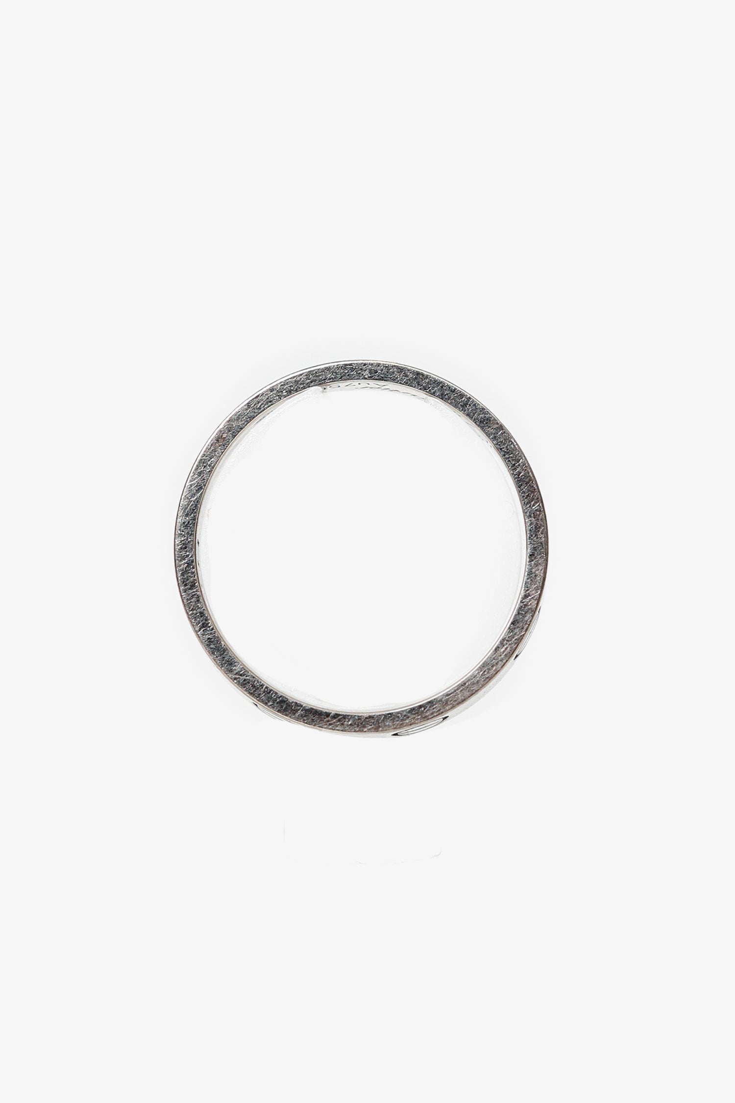 Cartier 18K White Gold Small Model LOVE Ring With Customized Engraving. Silver-tone hardware.