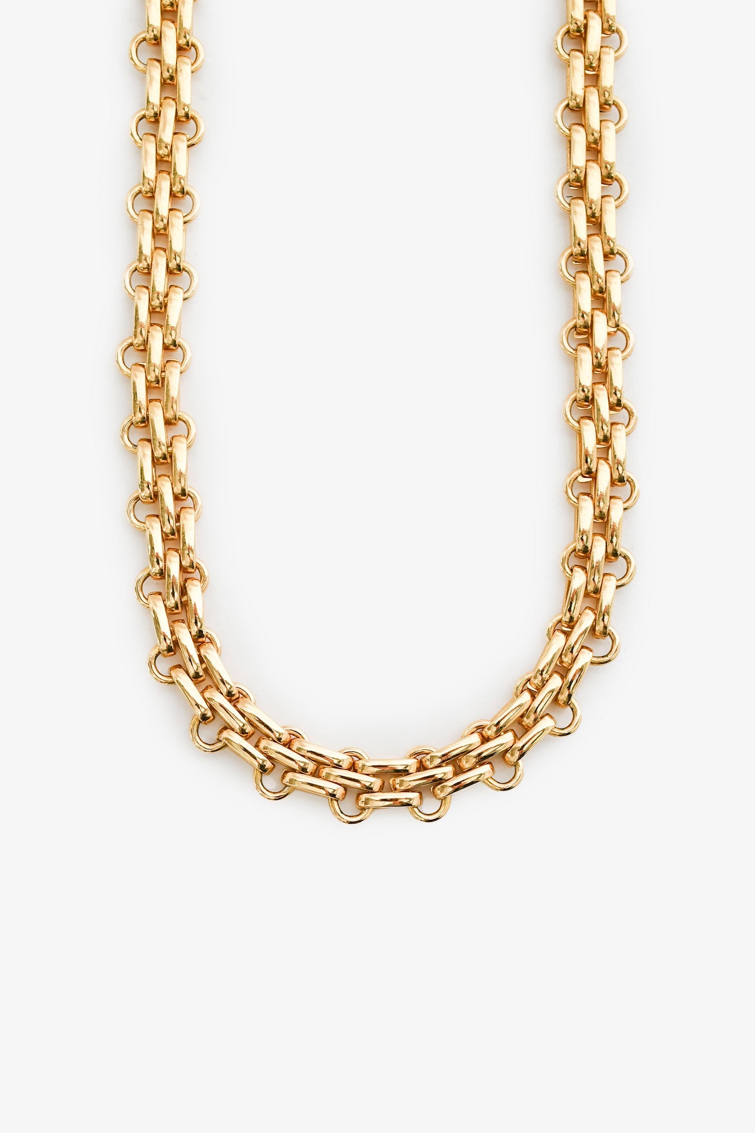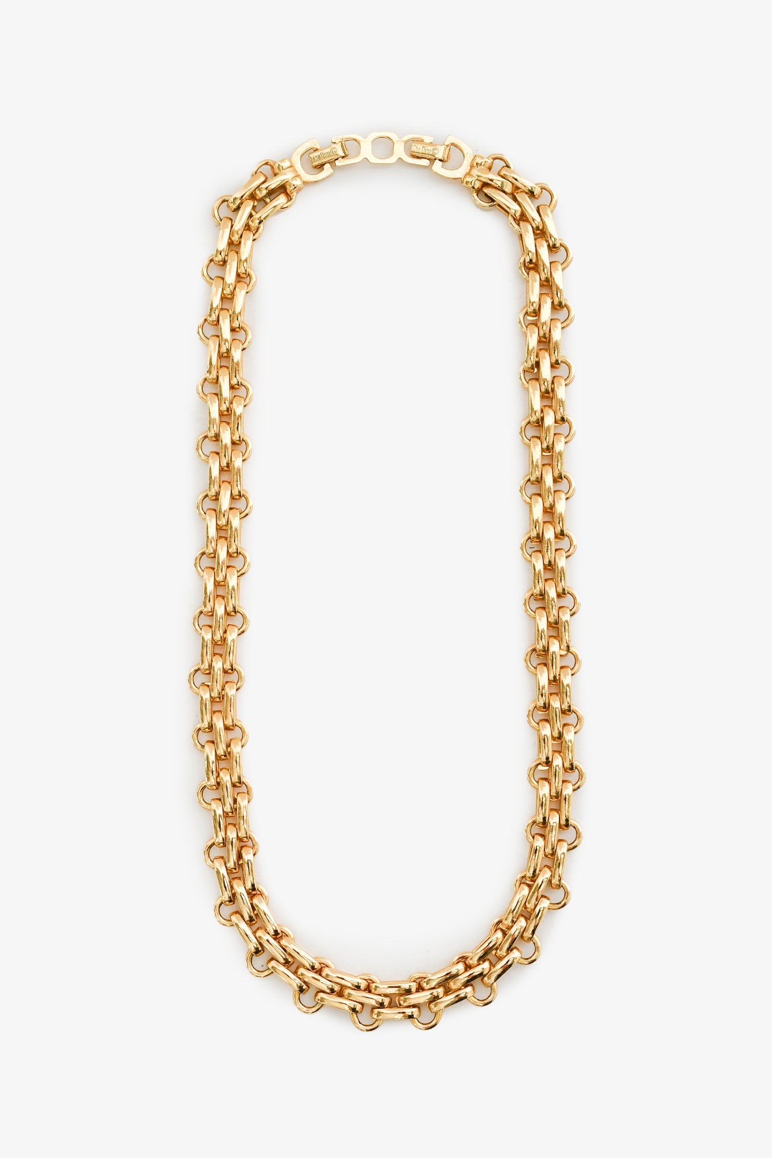 Christian Dior Gold Toned Interlocked Link Bar Necklace. Link-clasp closure. Gold-tone hardware.