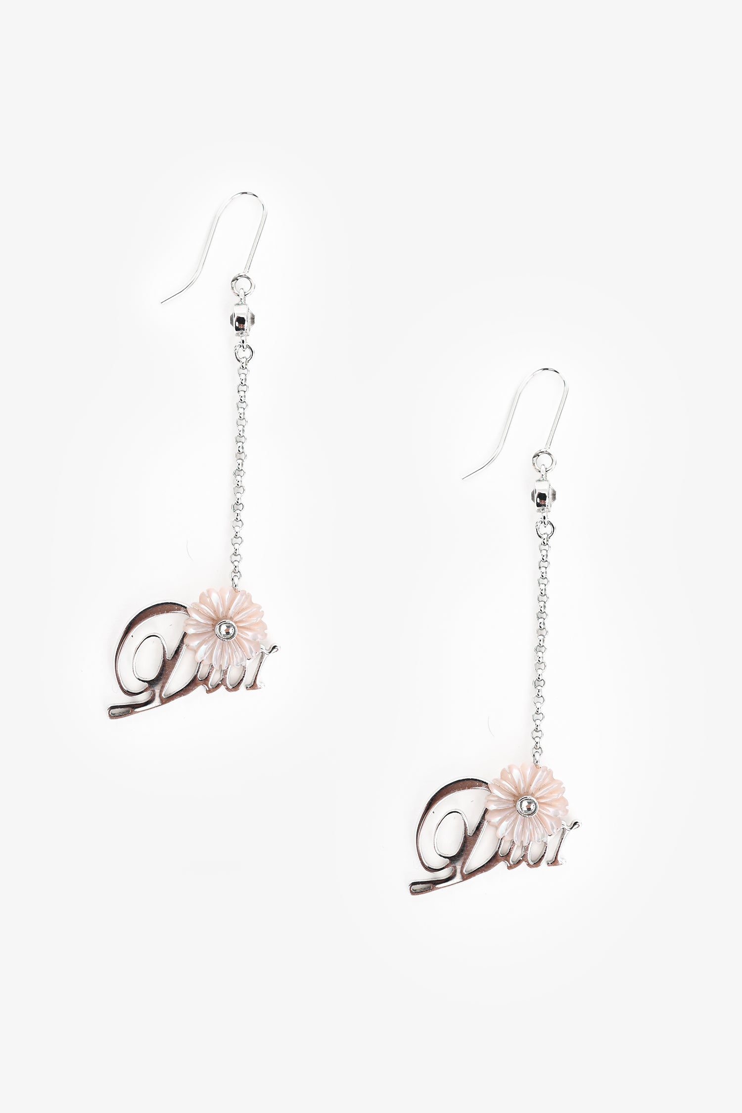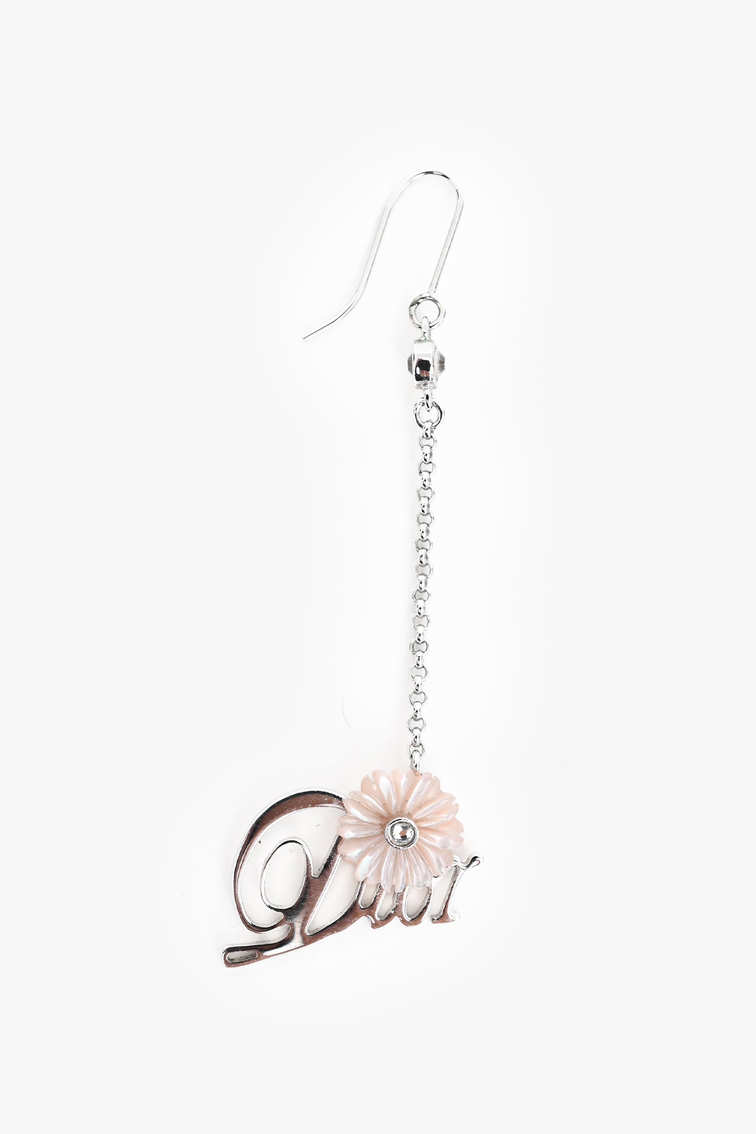 Christian Dior Silver Tone Metal Crystal Embellished Floral Logo Ear Pendants
