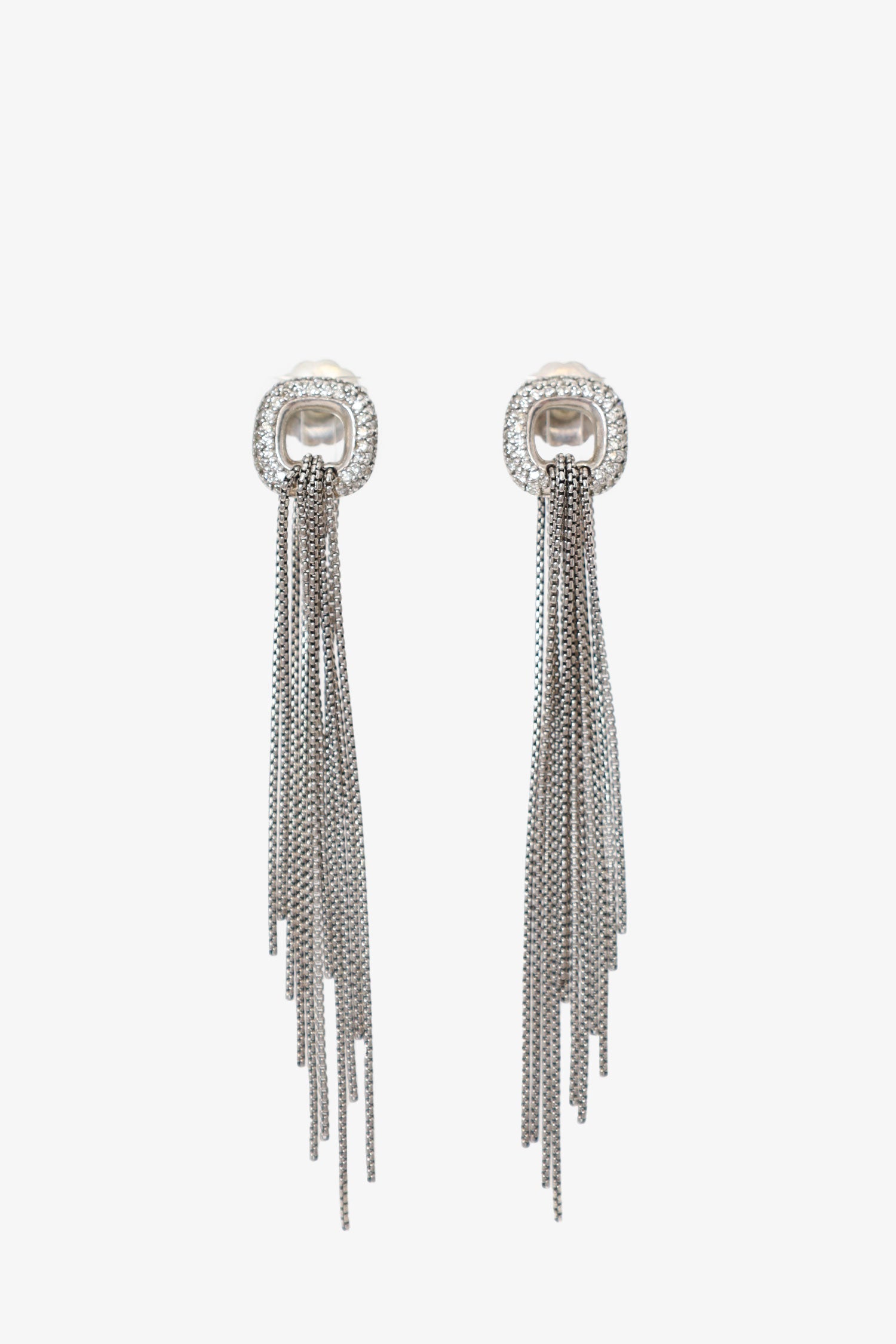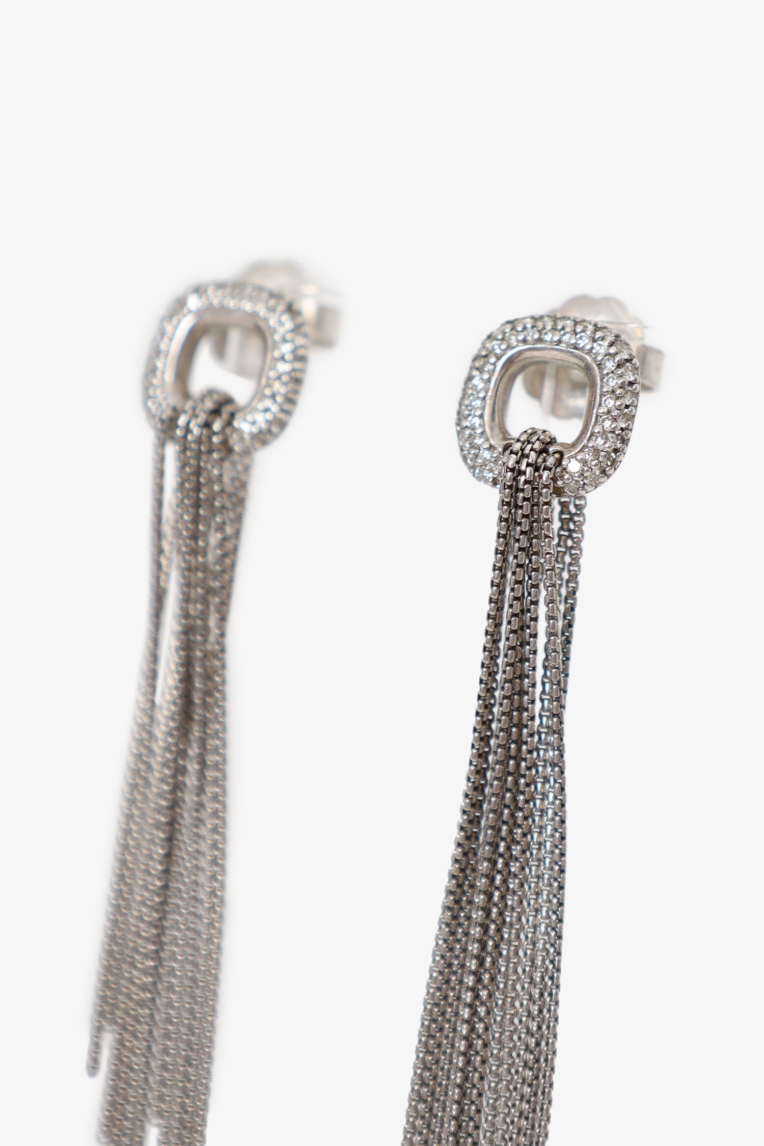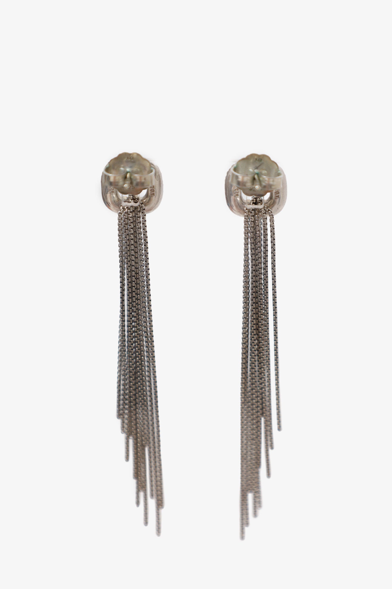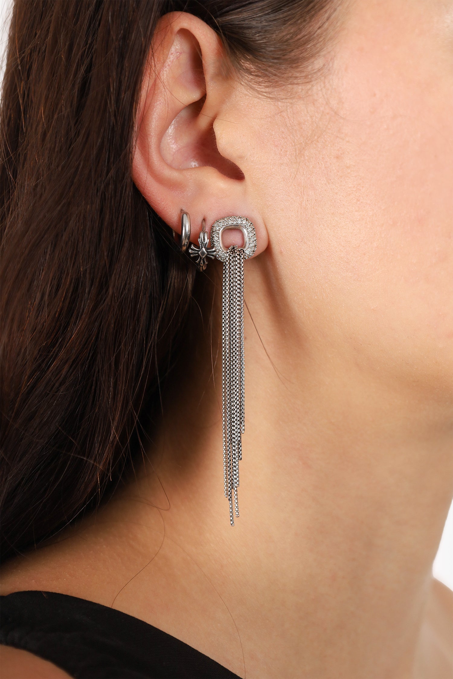 David Yurman Diamond 'Graphite Ice' Tassel Drop Earrings. Rear push-pin backing. Silver-tone hardware.
