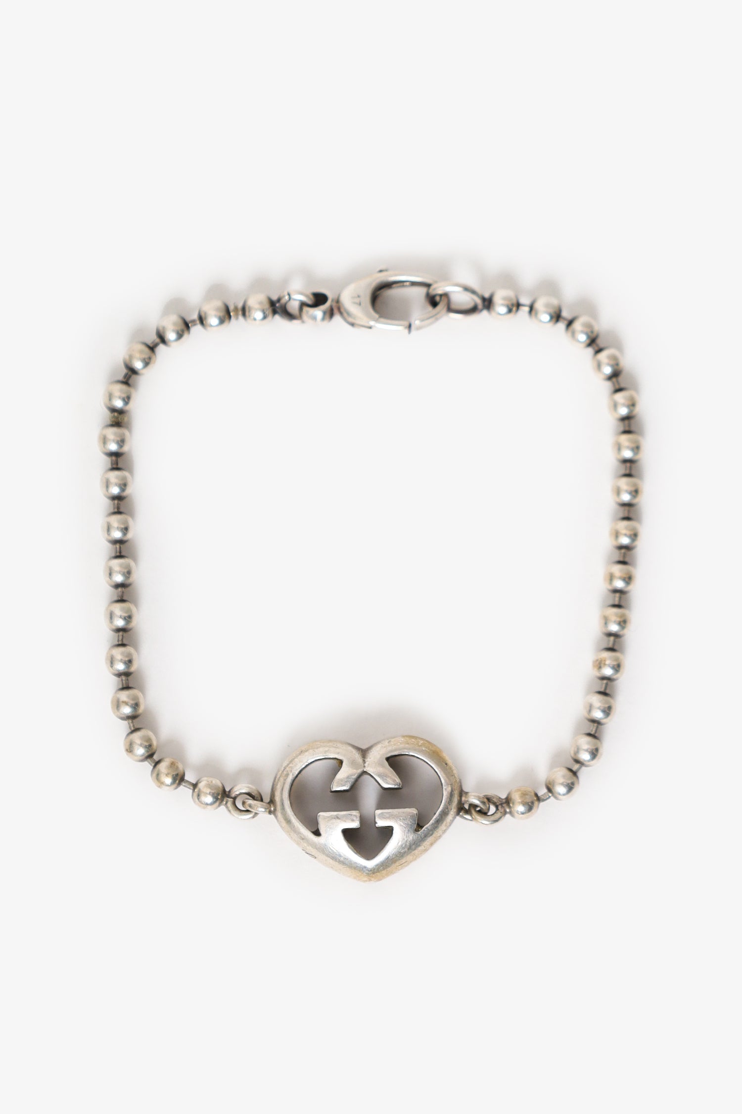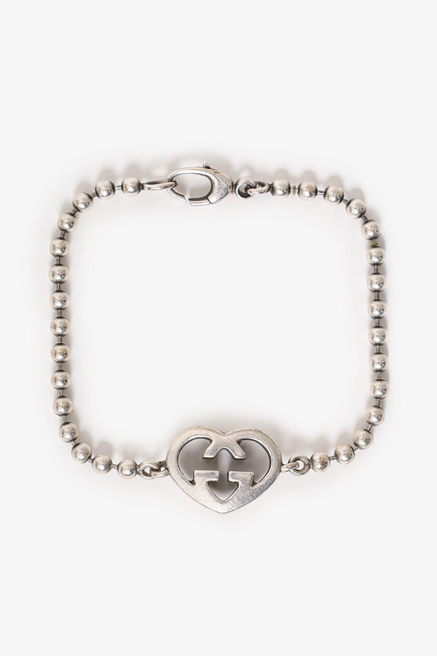 Gucci Sterling Silver Interlocking G Heart Bead Bracelet