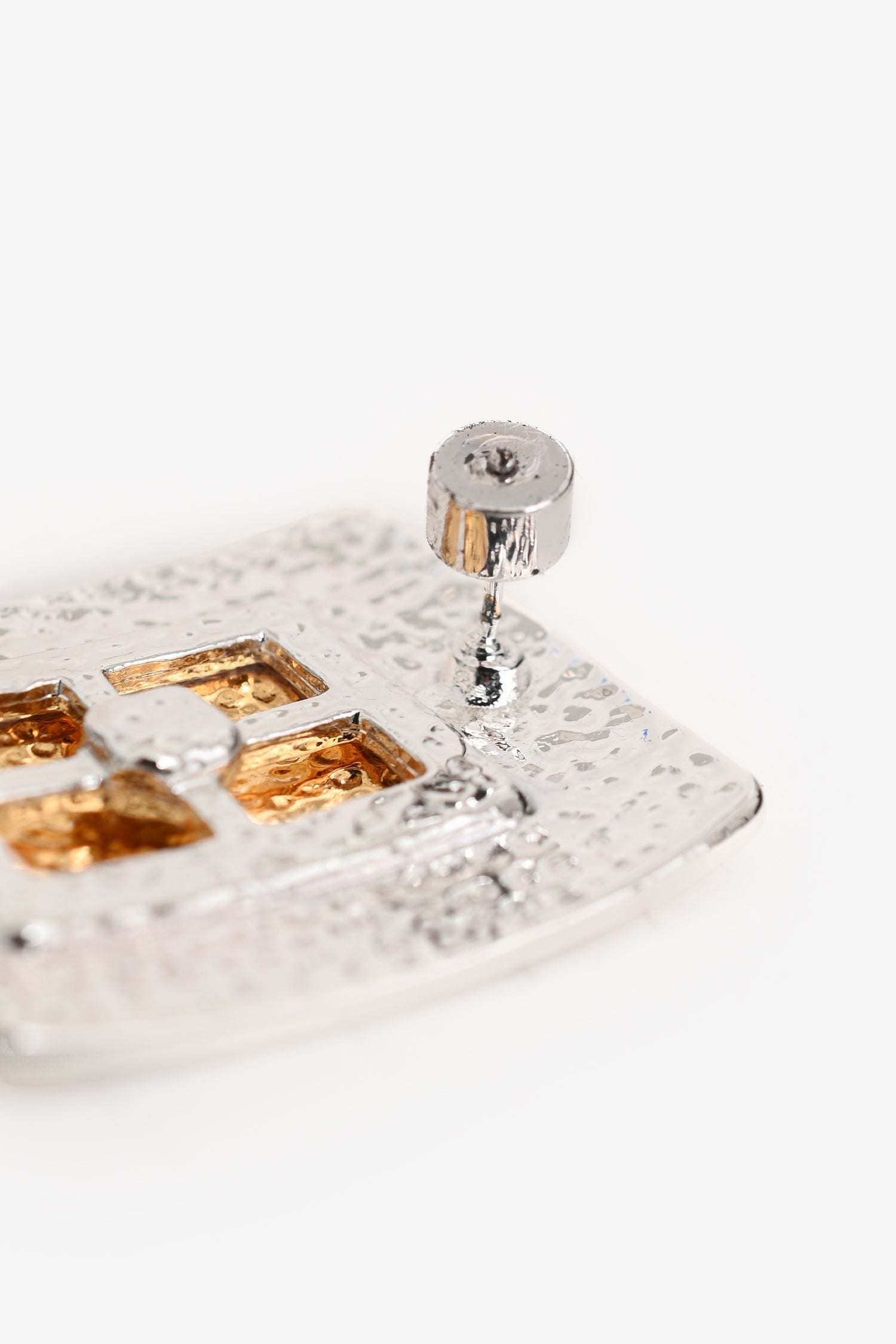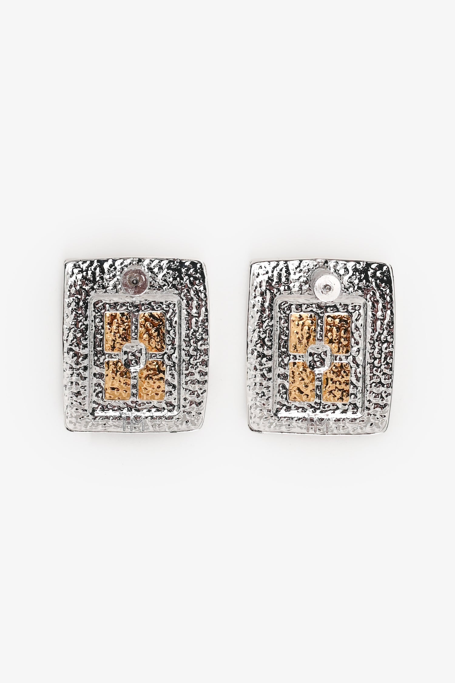 Heaven Mayhem Gold/Silver-Toned Plate Earrings. Rear push-pin backing. Gold and silver-tone hardware.