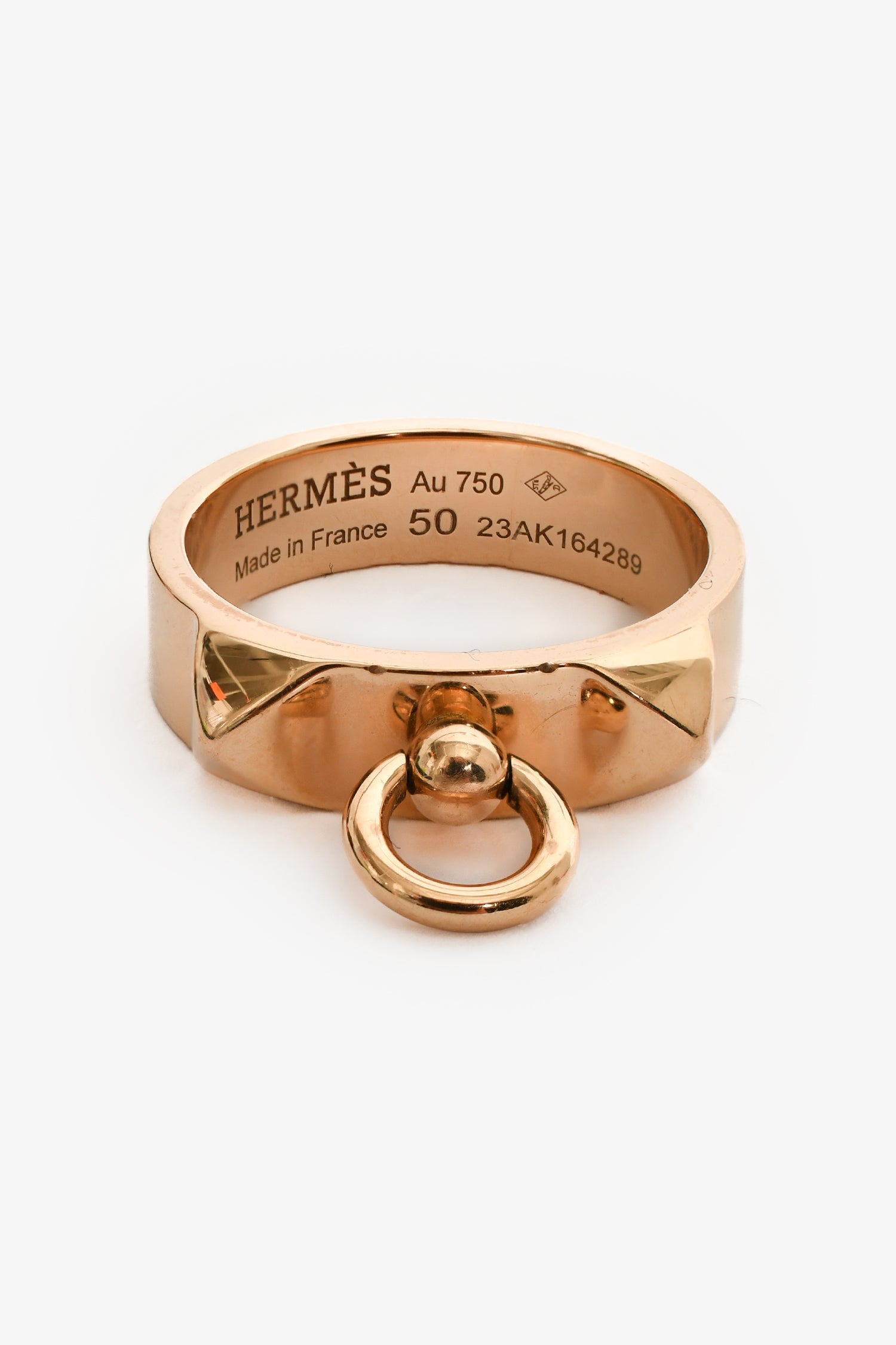 Hermès 18K Rose Gold 'Collier De Chien' Small Model Ring Size 50