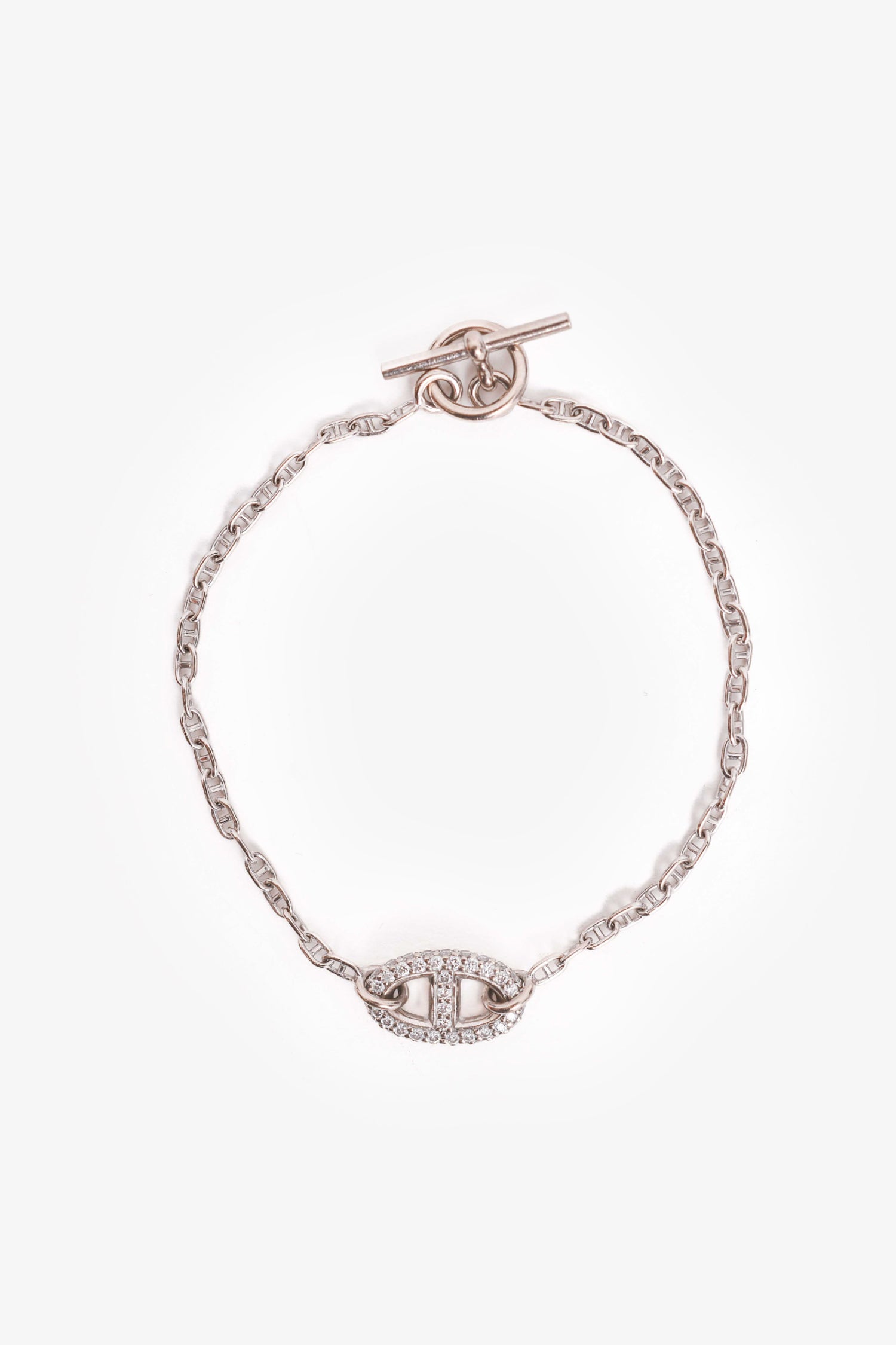 Hermès 18K White Gold Chain Diamond Farandole Bracelet. Toggle closure.