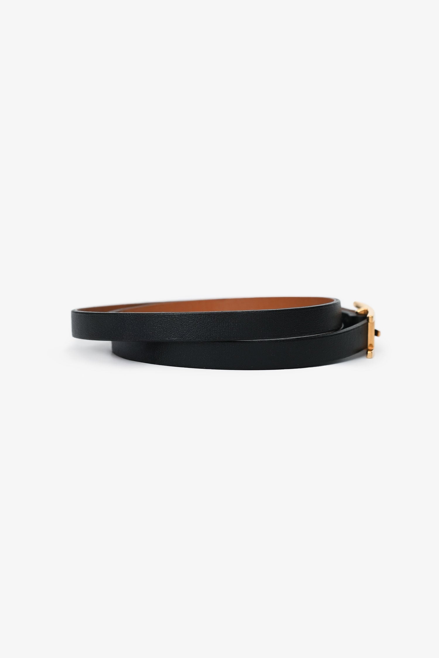 Hermès Black Leather Behapi Double Tour Bracelet. Adjustable pull-through buckle closure. Wrap around design. Gold-tone hardware. Tonal stitching.