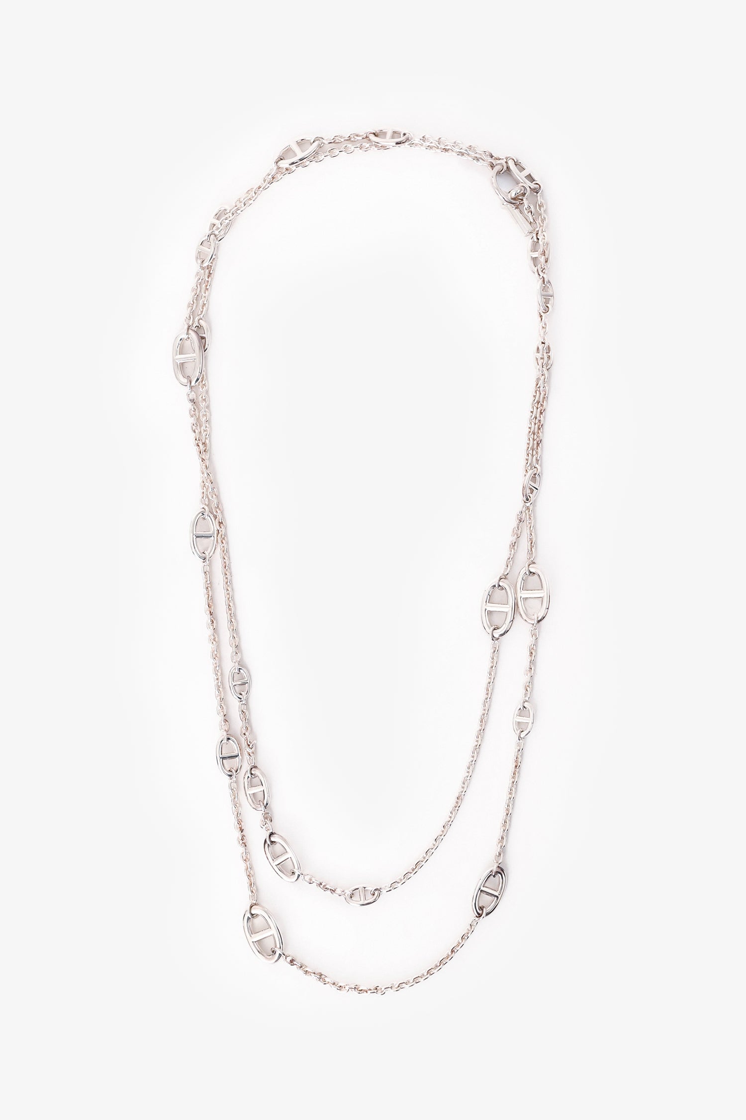 Hermès Sterling Silver Farandole Long Necklace 160. Toggle closure.