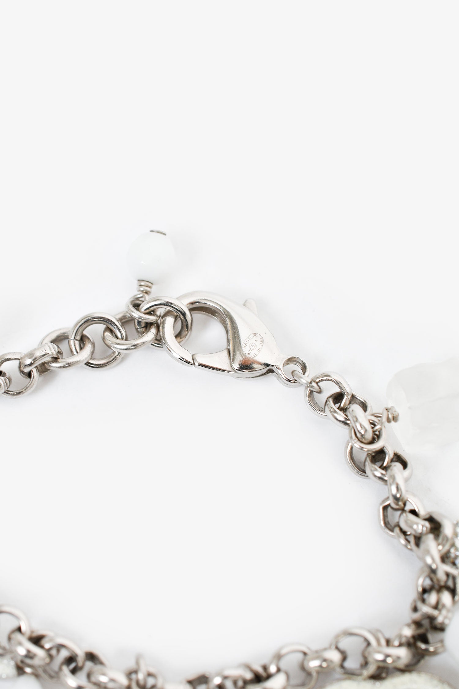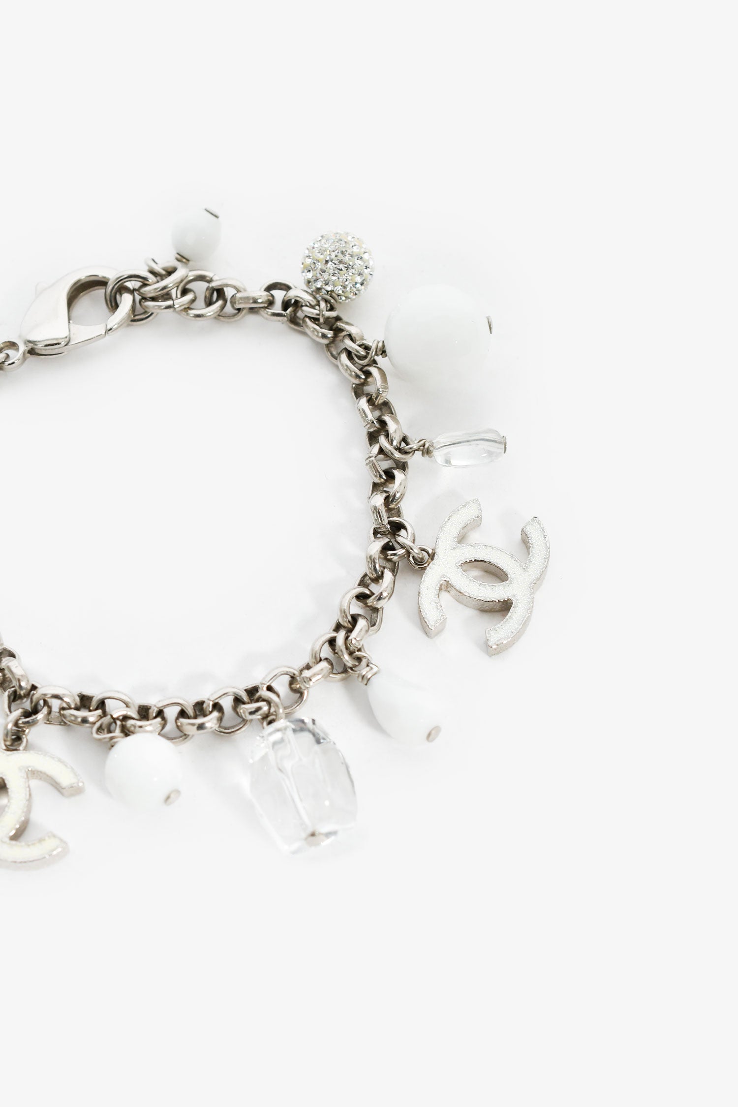 Chanel™ 2010 Silver Tone/White Enamel CC Charm Bracelet