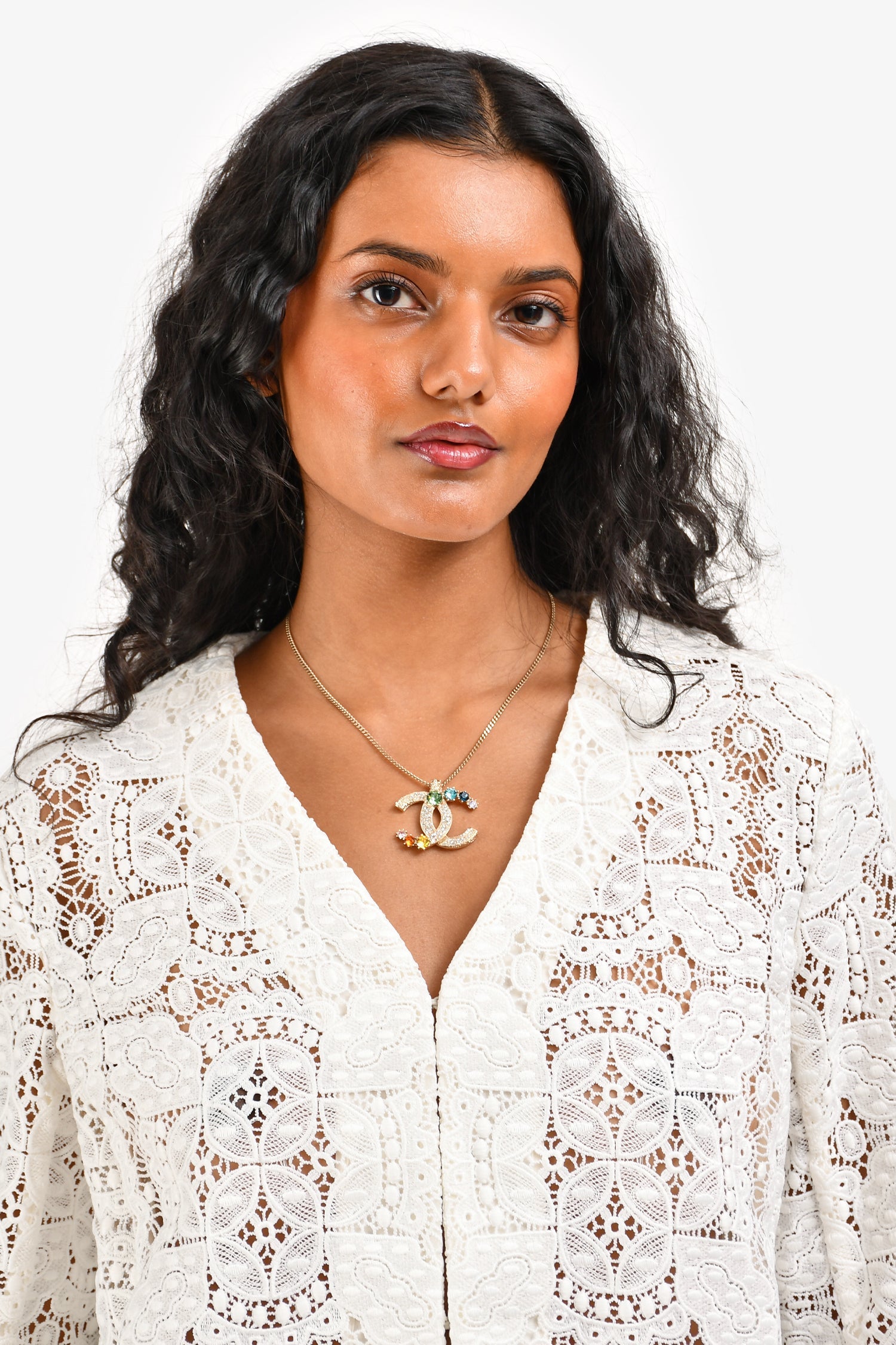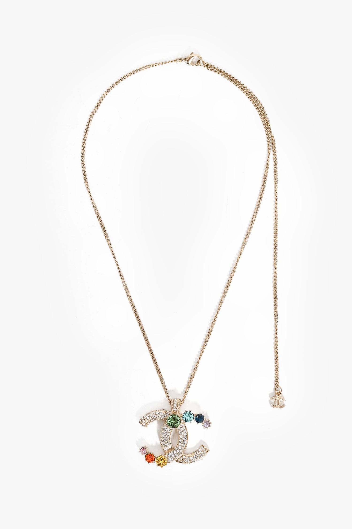 Pre-Loved Chanel™ 2019 Gold Toned Rainbow Crystal CC Necklace