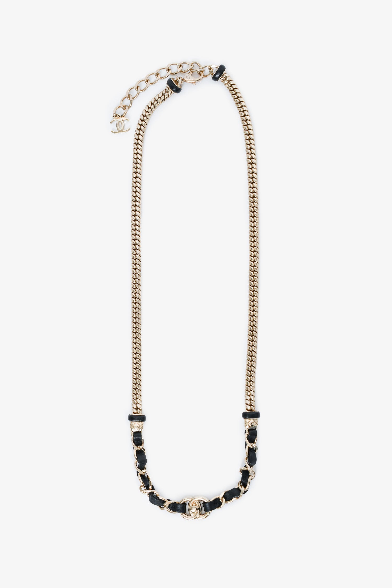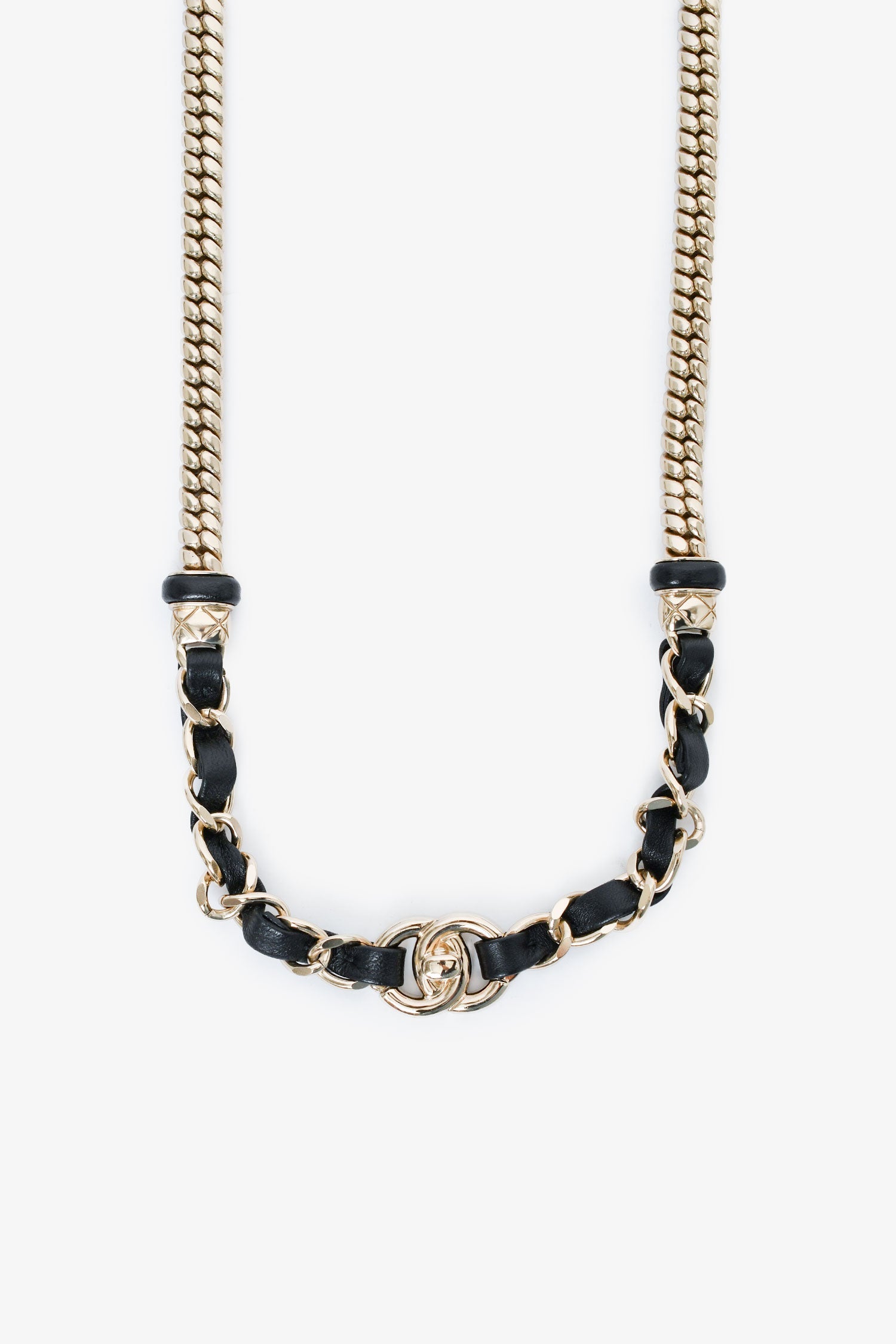 Pre-Loved Chanel™ 2021 Silver Tone/Black Leather Necklace. Pul-on. Lobster clasp closure.