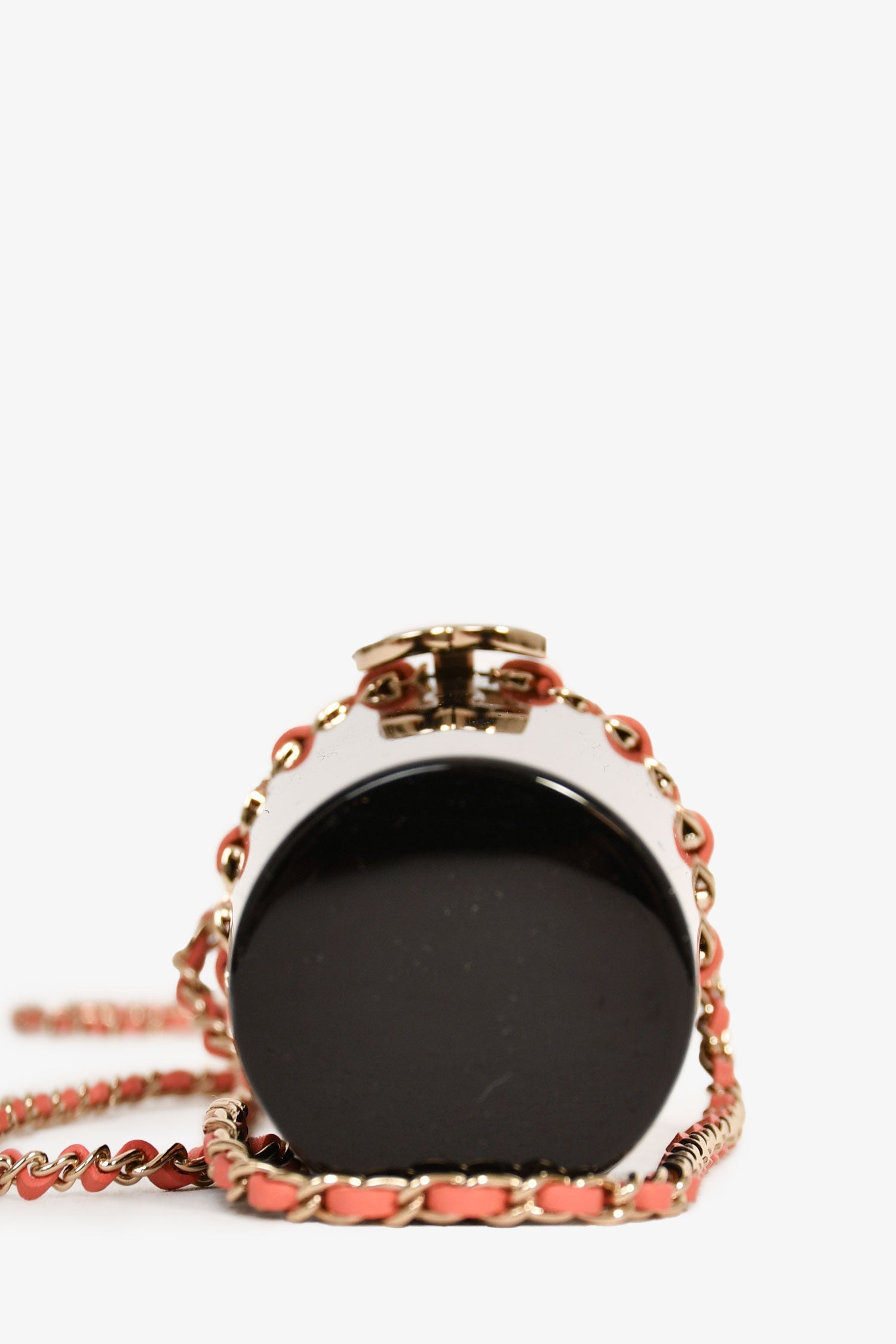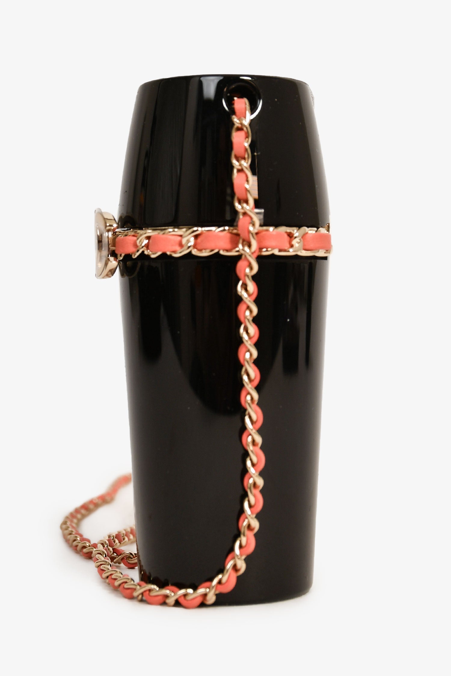 Pre-Loved Chanel™ Black Lucite Leather Pink Chain Trim Lipstick Case Necklace