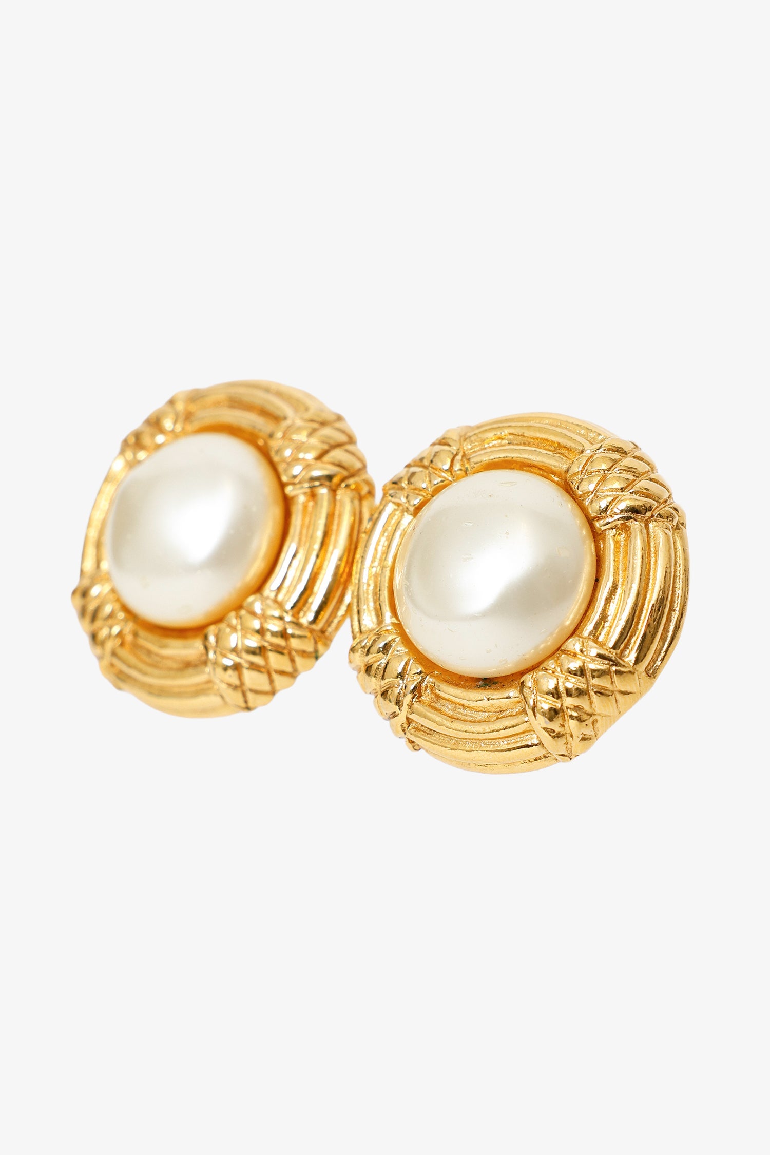 Pre-Loved Chanel™ Gold-plated Pearl Round CC Button Clip On Earrings