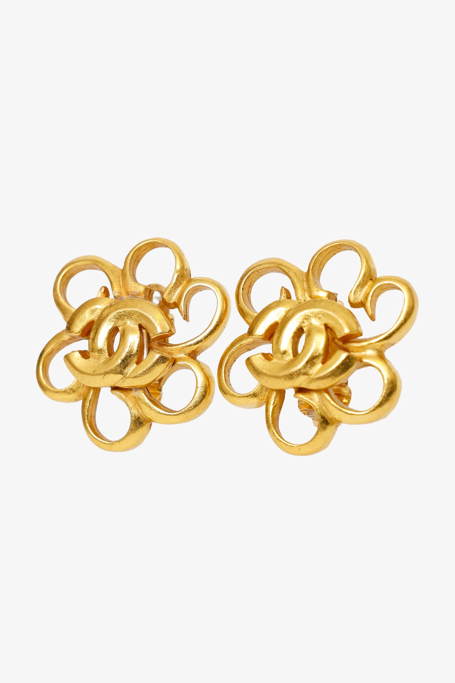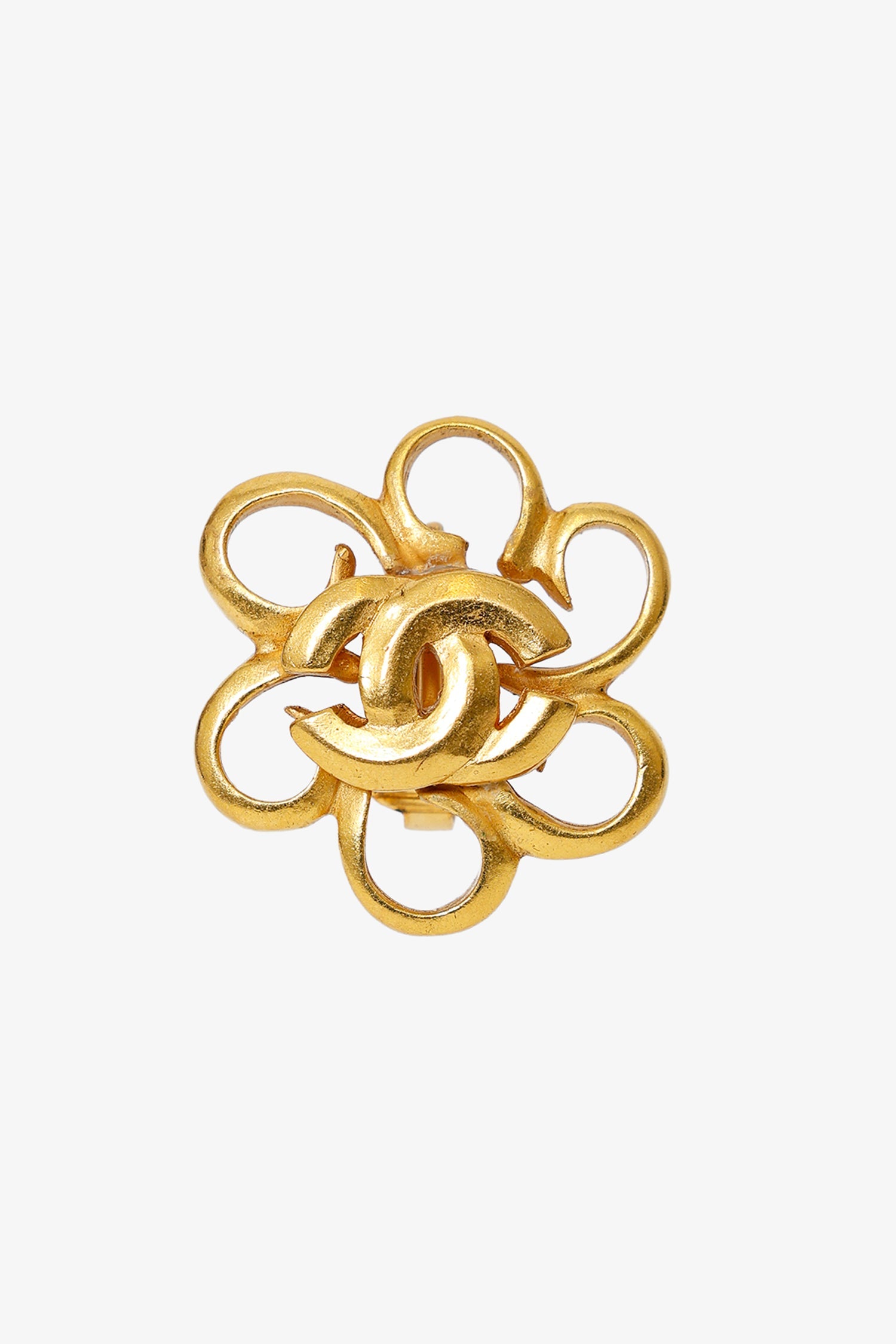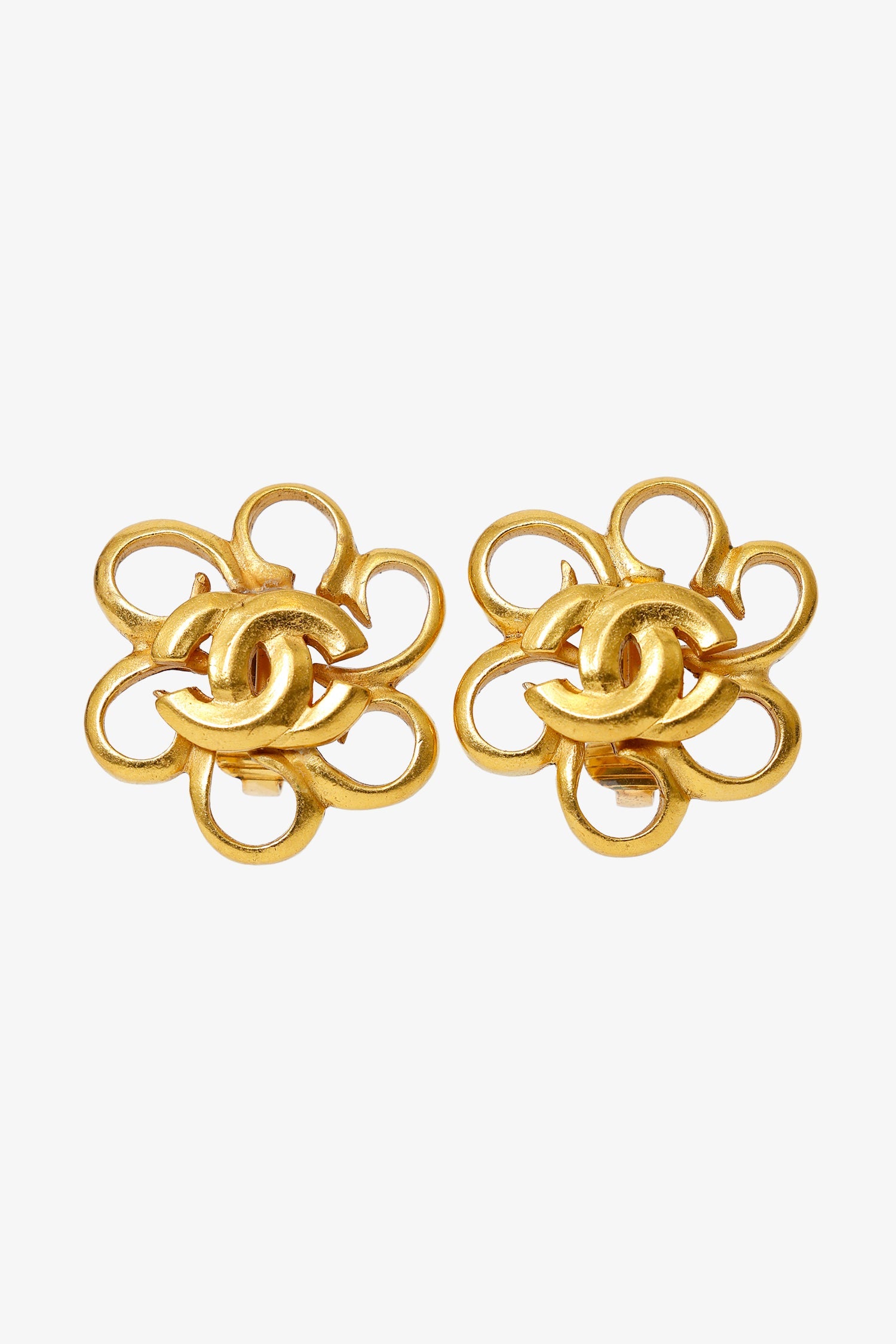 Pre-Loved Chanel™ Gold Tone CC Flower Clip-on Earrings. Rear clip-on closure.