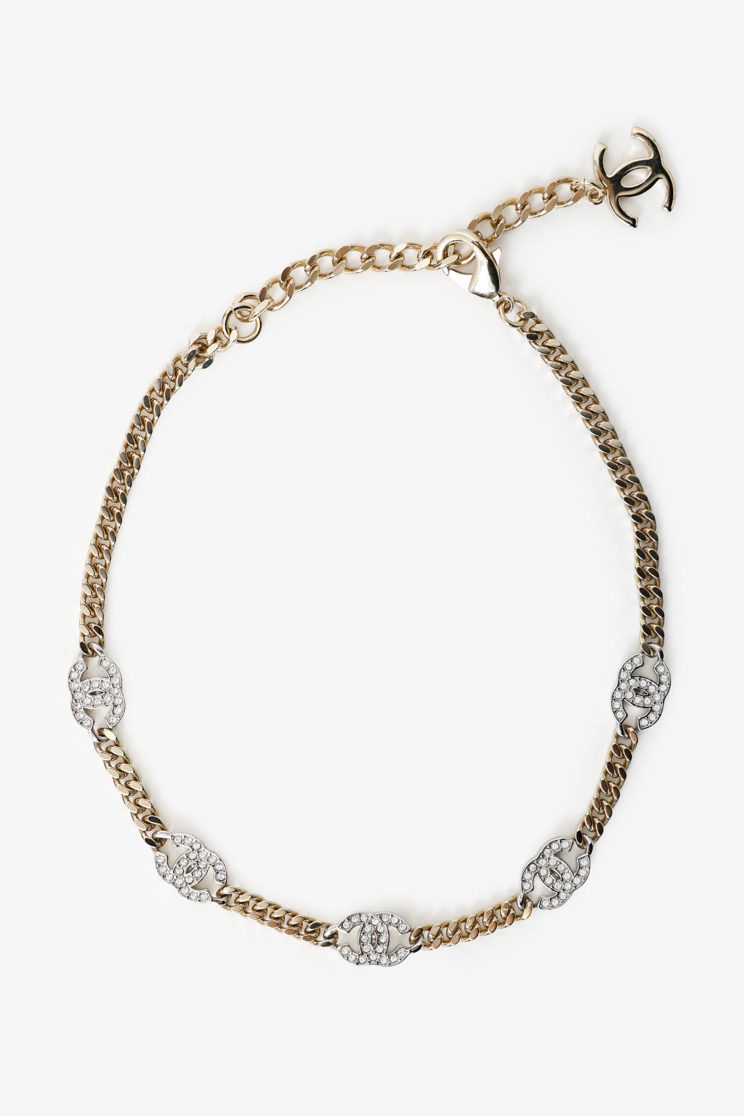 Pre-Loved Chanel™ Gold-toned CC Chain Crystal Choker. Adjustable rear clasp closure. Gold-tone hardware.