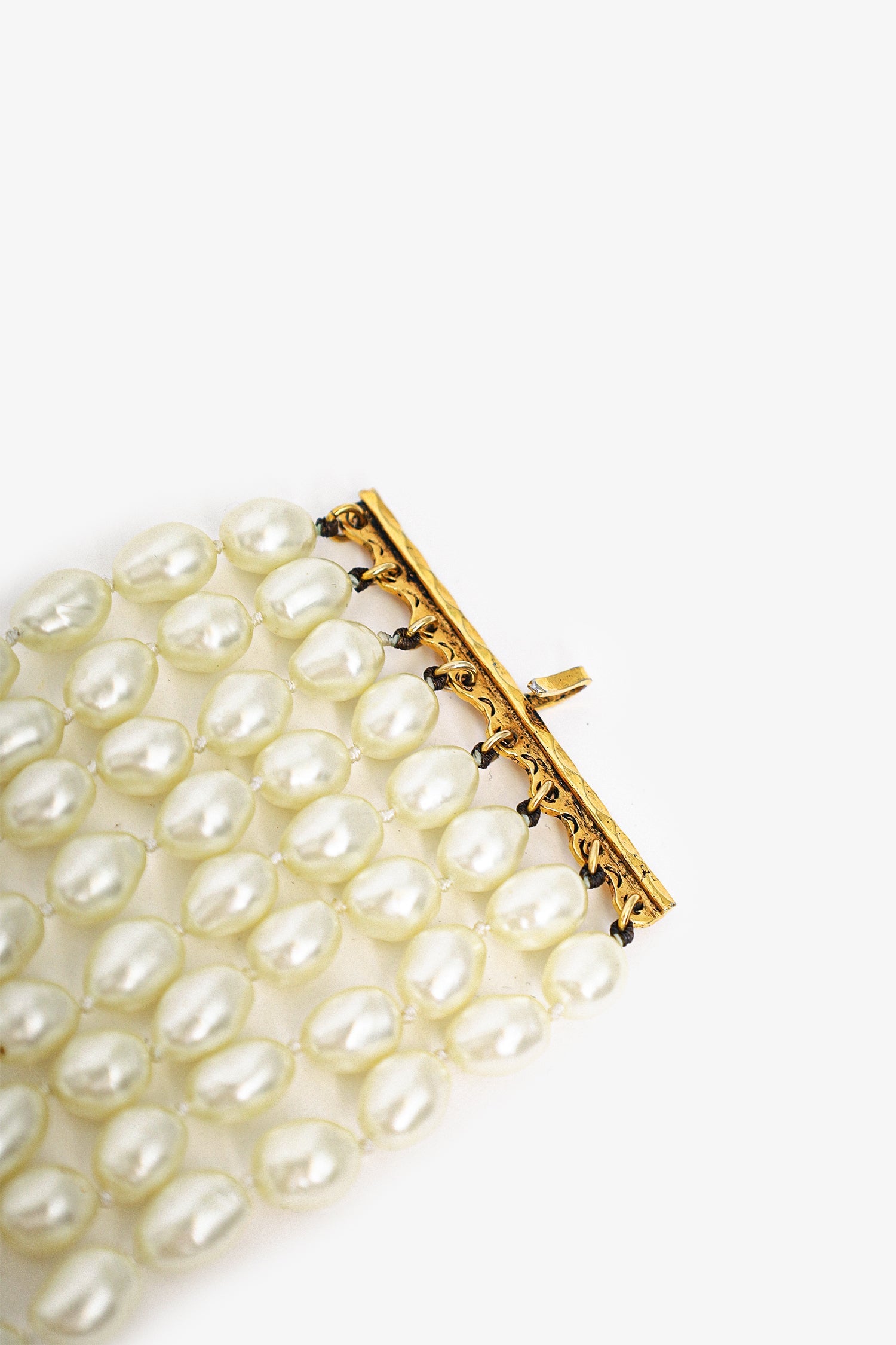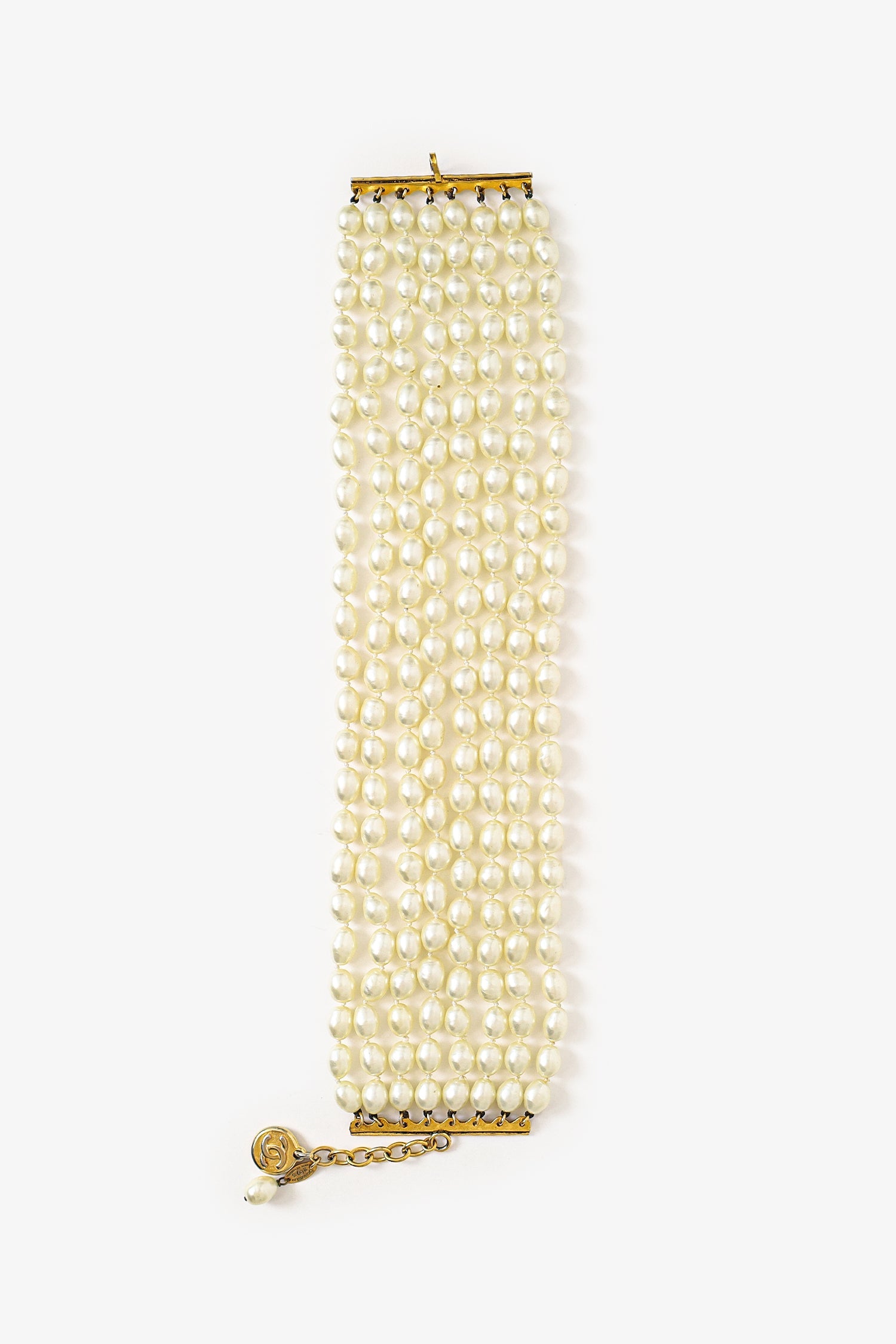 Pre-Loved Chanel™ Pearl 8 Strand Choker Necklace. Rear hook closure. Gold-tone hardware.