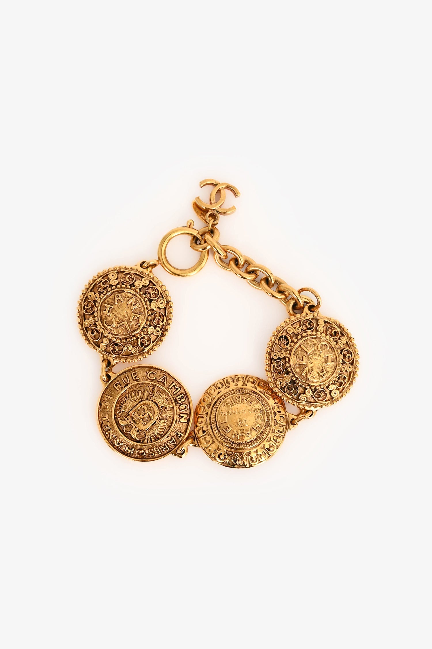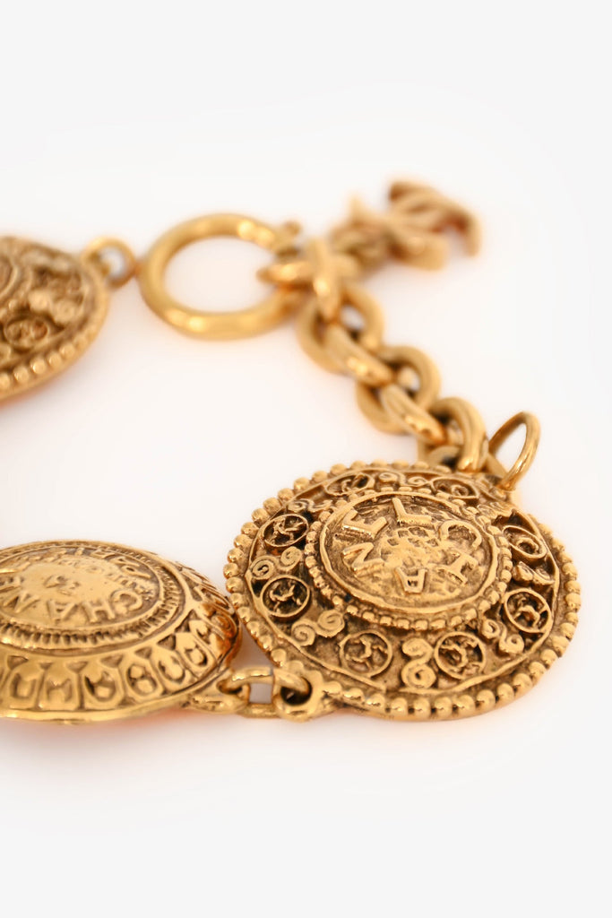 Pre-Loved Chanel™ Vintage 'Rue Cambon' Gold Tone Bracelet