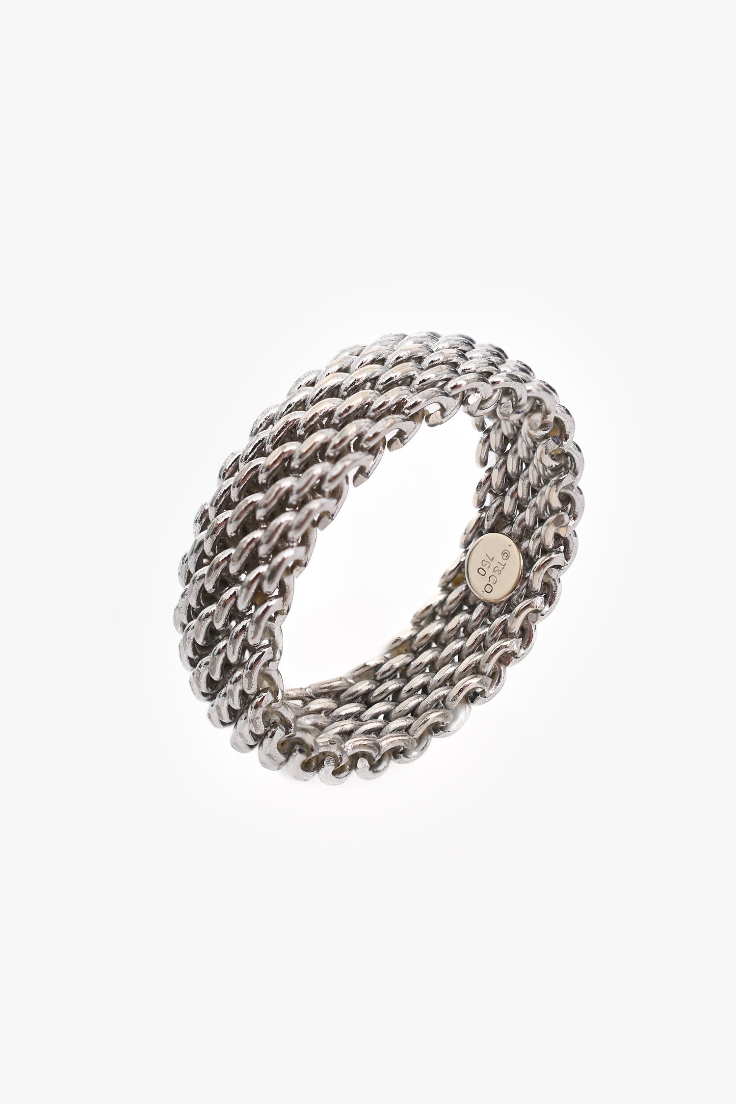 Tiffany & Co. 18k White Gold Somerset Ring Mesh Weave. Slip-on. Silver-tone hardware.