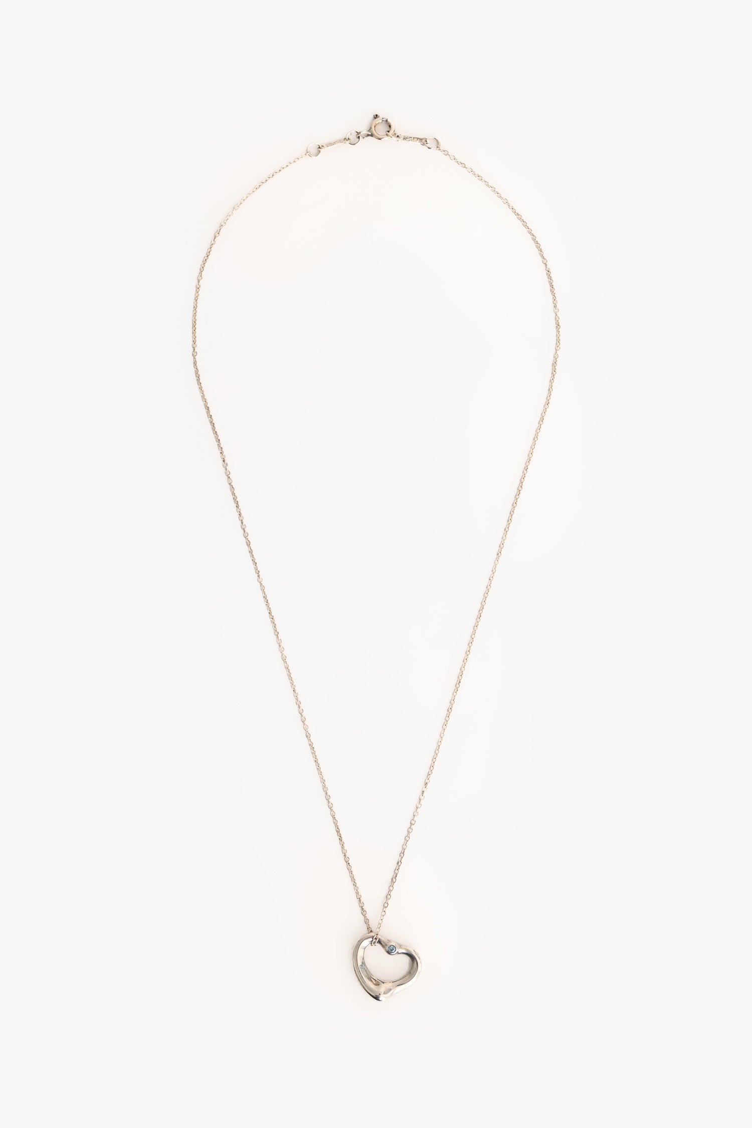 Tiffany & Co. By Elsa Peretti Sterling Silver Gemstone Set Open Heart Pendant Necklace. Adjustable spring ring closure.